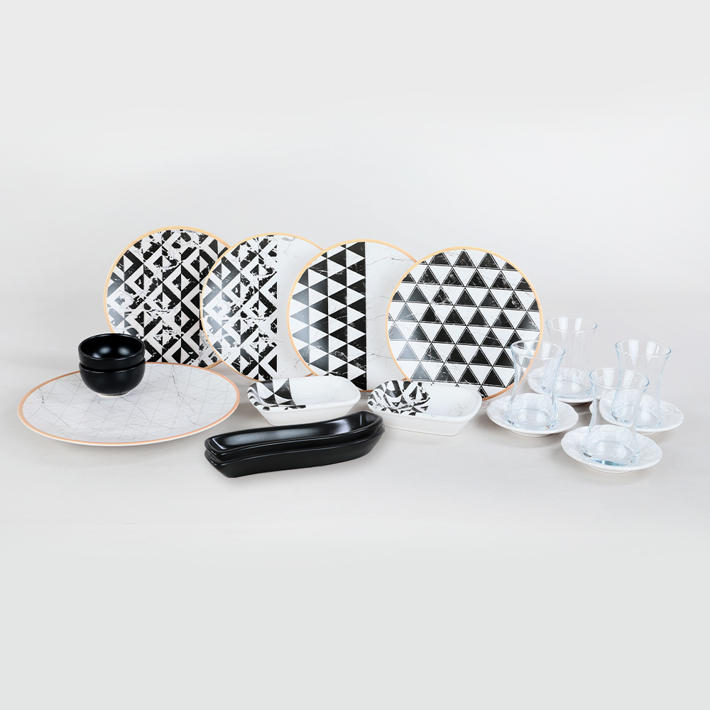 تم تصميم مجموعة إفطار Keramika المكونة من 4 أشخاص Trigon Marble ، حيث تلتقي خطوط المثلث مع الديكور الرخامي ، بعناية لتقديم عروض تقديمية أنيقة. مجموعة الإفطار ، التي تم إنشاؤها بنبل اللونين الأسود والأبيض ، ستثير شهية عائلتك وضيوفك في العروض التقديمية! يمكنك اختيار مجموعة الإفطار الخاصة هذه كهدية خاصة أو تقديم وجبة إفطار لطيفة يوم الأحد.