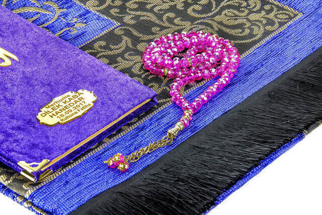 :معلومات المنتج "طقم الحج والعمرة المولد 21 - الاسم المطبوع المخمل المغطى ياسين - سجادة الصلاة - مسبحة - محاصر"