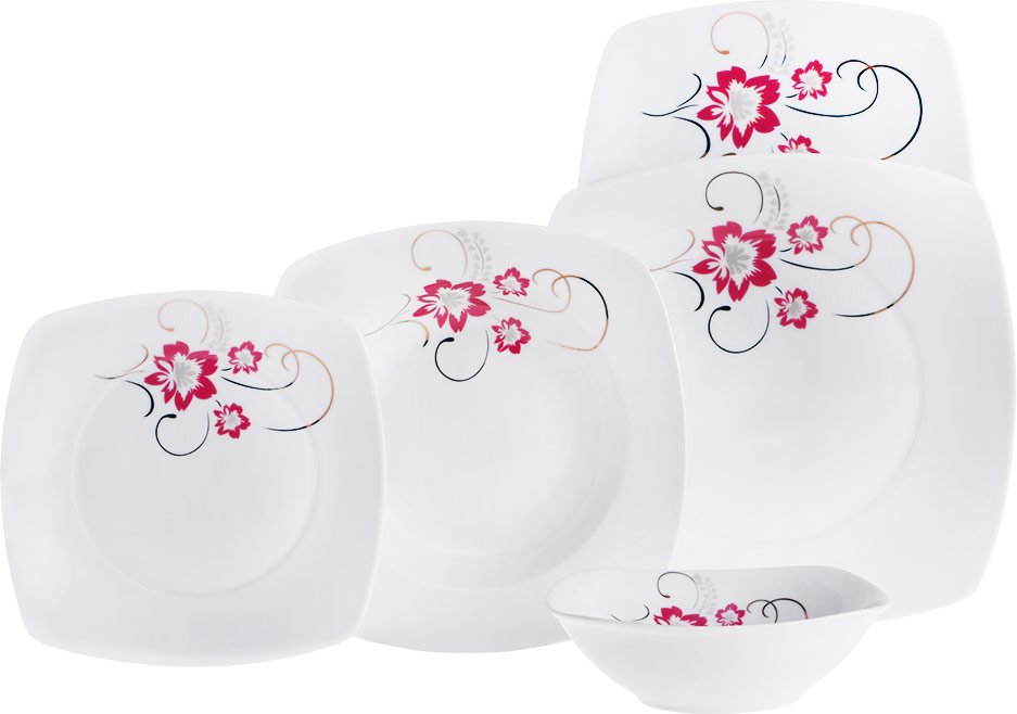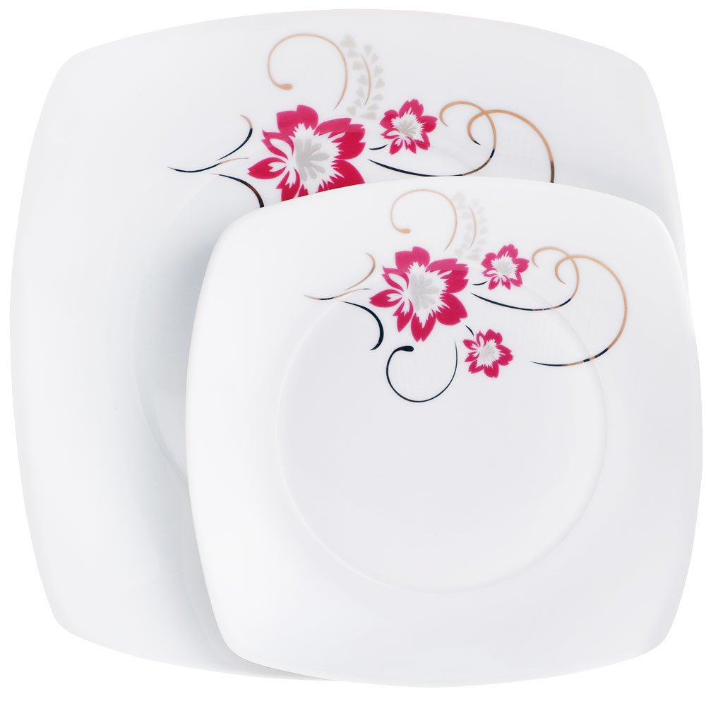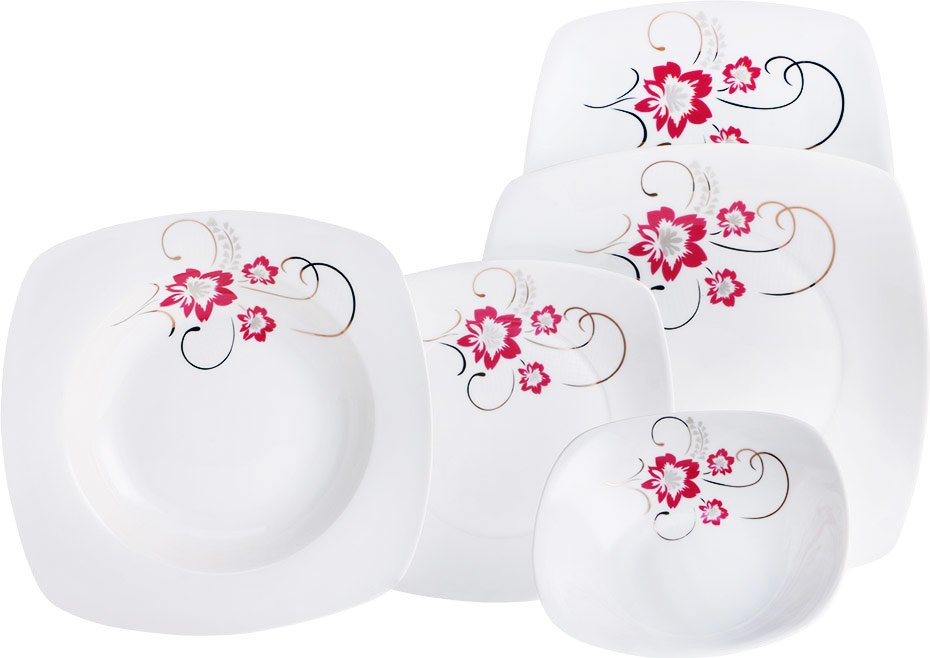 الأبعاد والتسليم: 1× بريكارد 25 قطعة مجموعة عشاء البورسلين مع الزهور الحمراء | مربع | 6 الناس