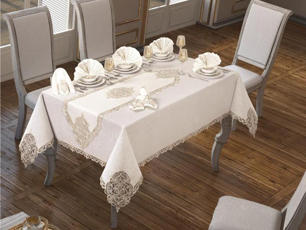 :معلومات المنتج "طقم مفرش طاولة فاخر أنيق 26 قطعة 160x260 سم ذهبي كريمي"