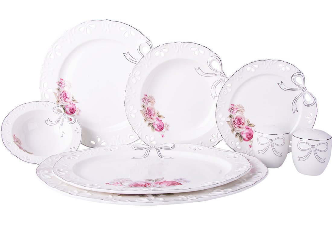 التسليم والأبعاد: 1 × هايال 28 قطعة الدانتيل مجموعة عشاء | جولة | فضة