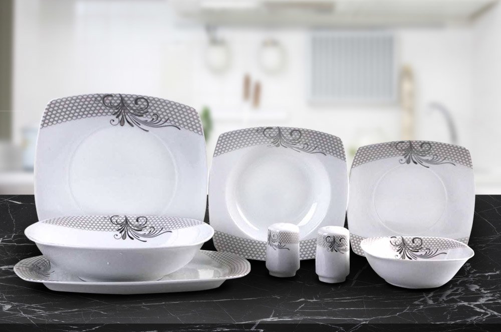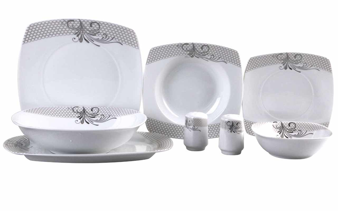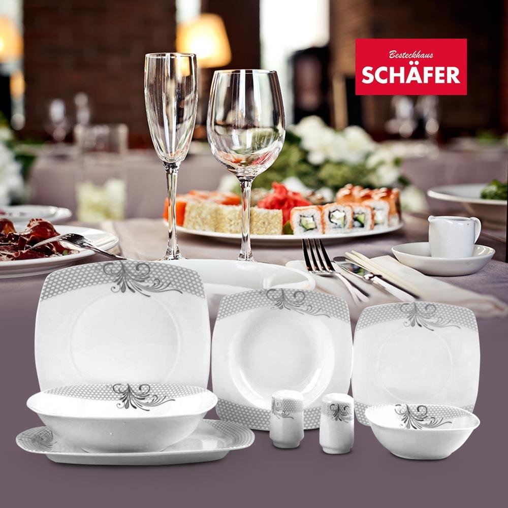 التسليم: 1 × شافير 28 قطعة عشاء الخزف تعيين نمط الفضة | 6 الناس | 30987