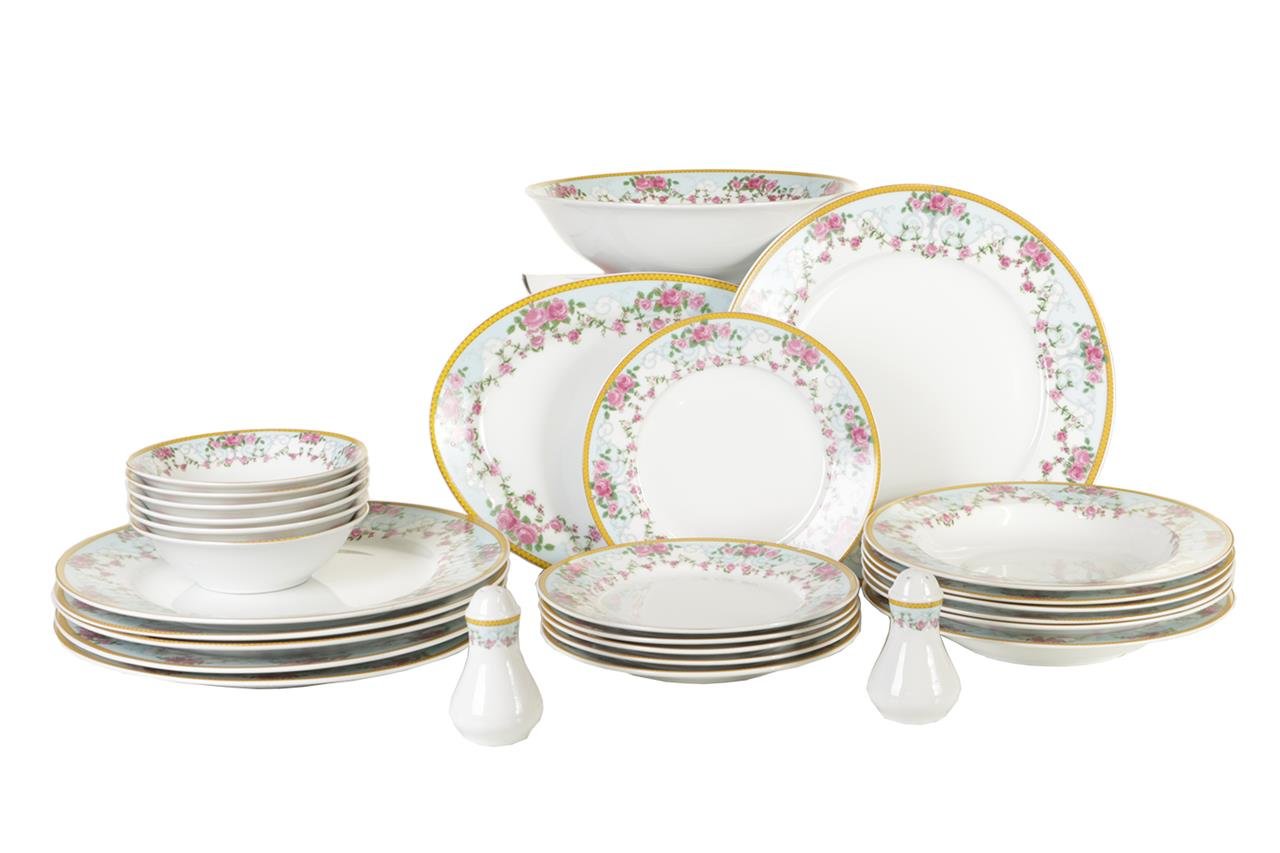 التسليم: 1 × Schäfer 28 قطعة مجموعة عشاء الخزف جولة مع الزهور | 6 الناس | 30989