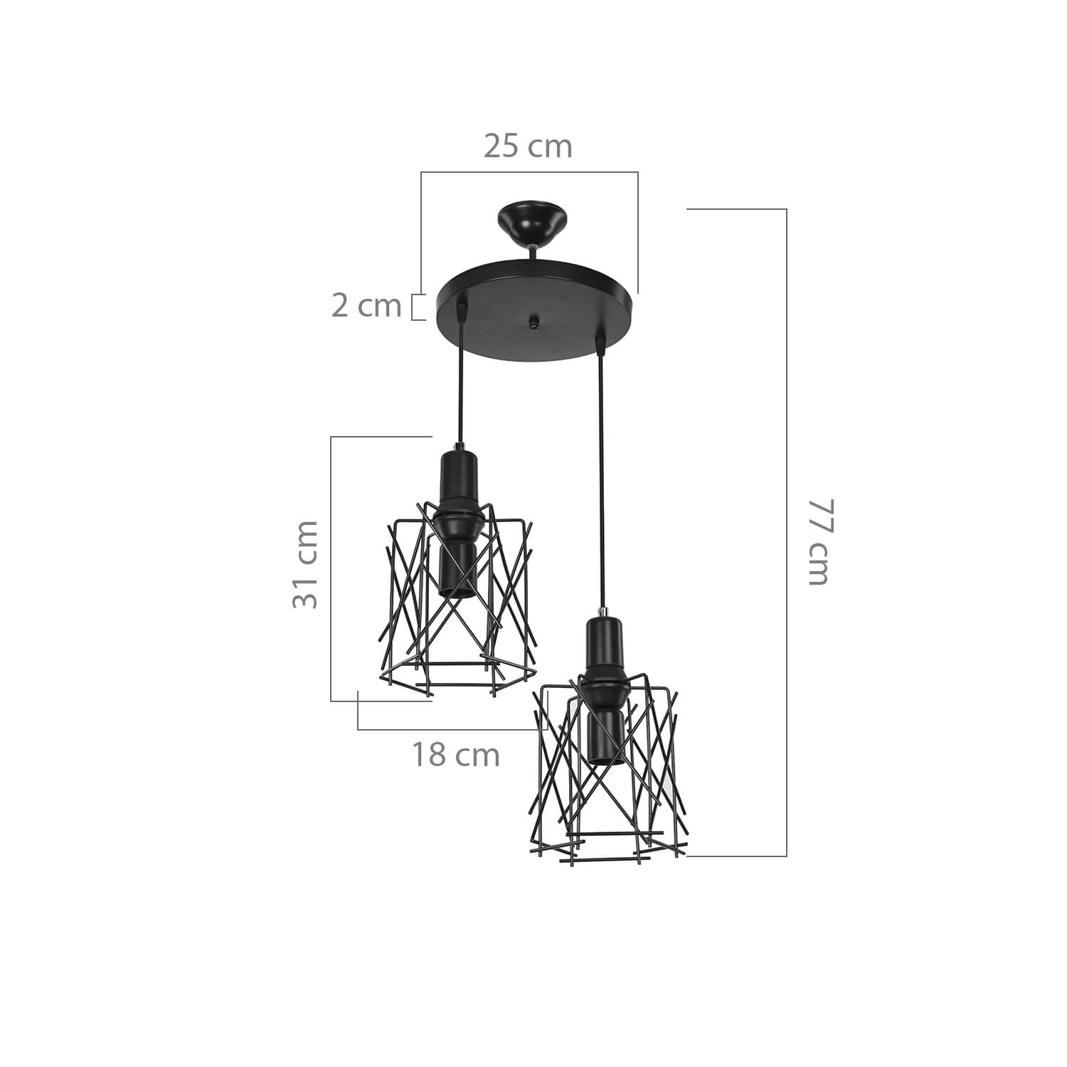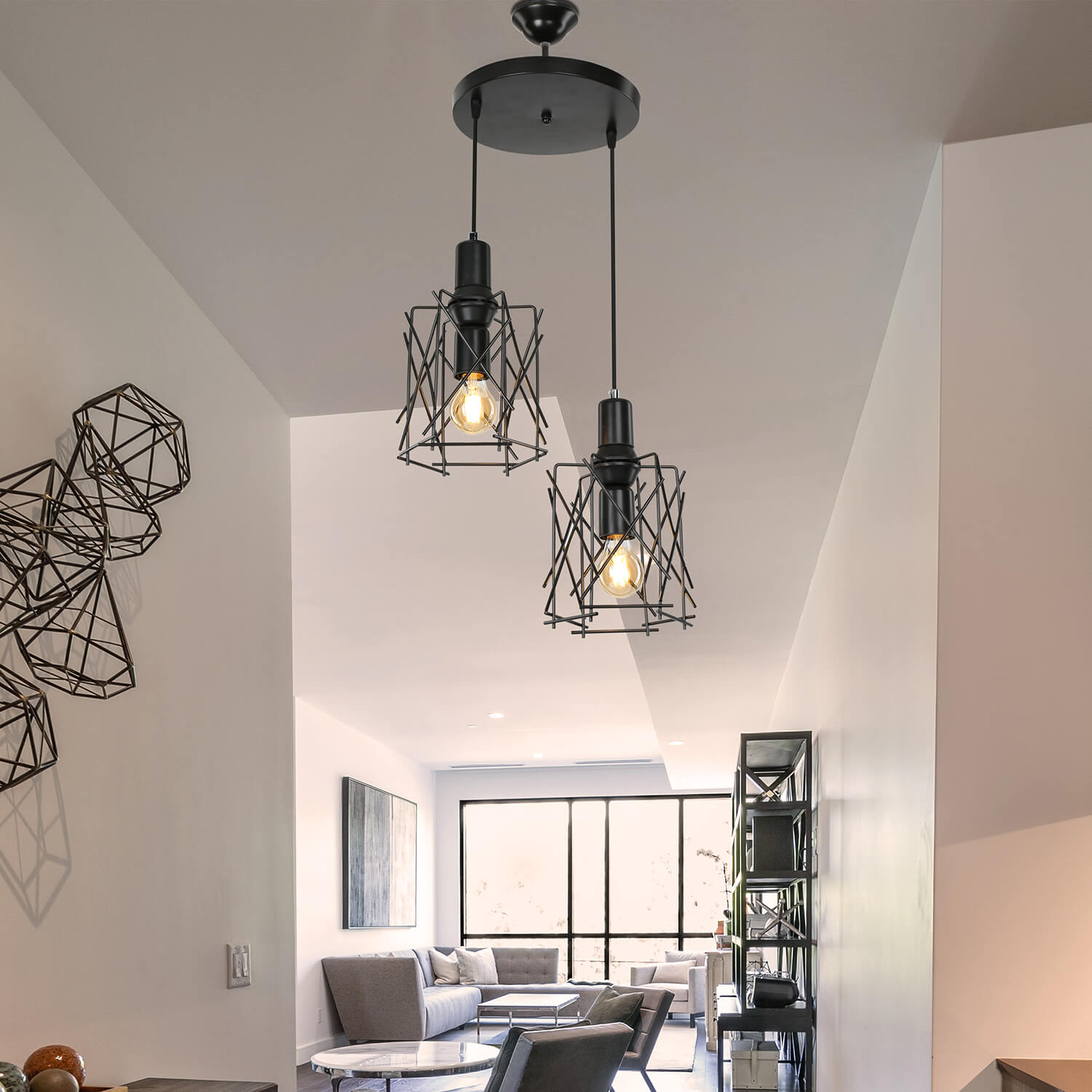 . تعكس تناغم الإطار الشبكي المعدني غير المتماثل المطلي بالأسلاك والخطوط التي تعكس الطراز الحديث ، تضيف "الثريا المختلطة 2 الدائرة" أجواء مختلفة إلى البيئة التي تقع فيها.