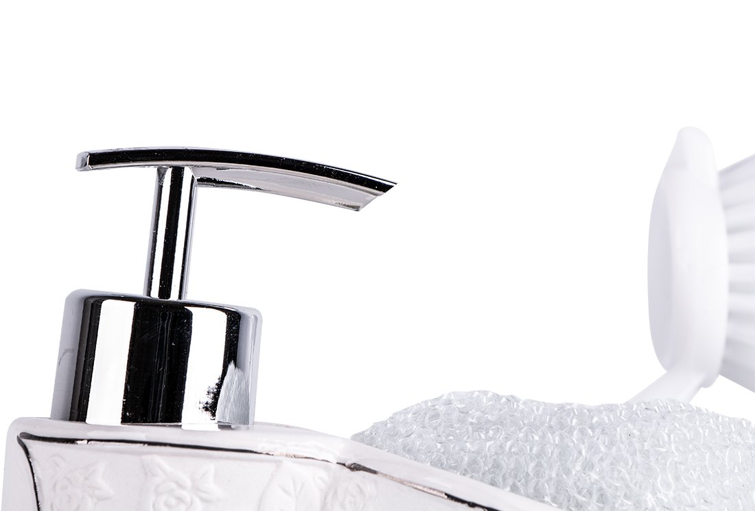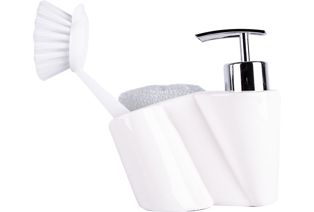 التسليم والأبعاد: 1 × دكوناز السائل موزع الصابون فرشاة مجموعة 4 قطع | أبيض