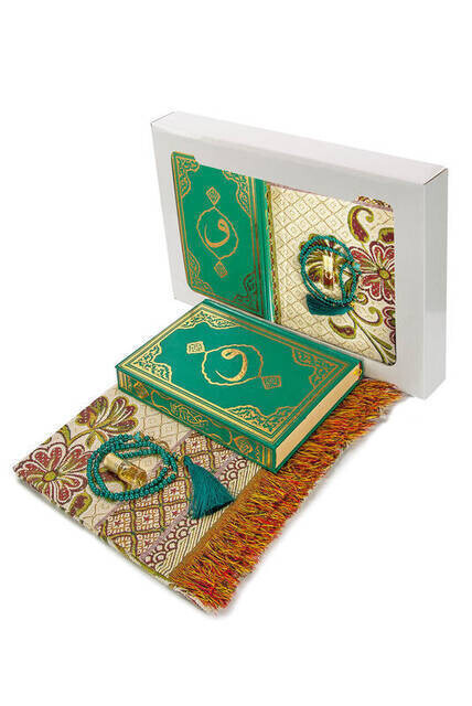 طقم رمضان الخاص مصحف متوسط سجادة صلاة من نسيج 99 مسبحة من اللؤلؤ جوهر صندوق خاص قراءة المزيد