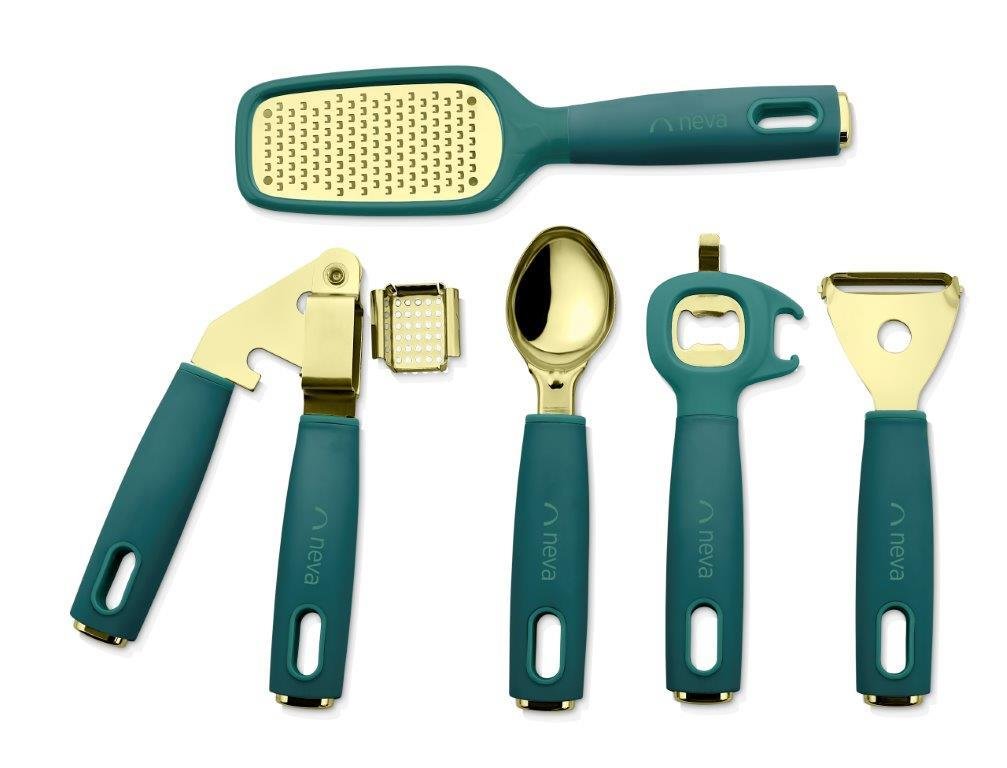 التسليم من: 1 × مجموعة أدوات المطبخ نيفا من 5 قطع | الذهب الأخضر | N2639