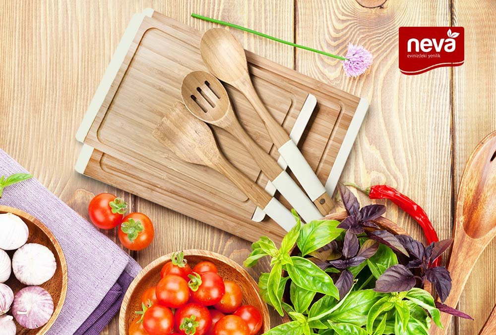 التوصيل: 1X Neva Sweet طقم أدوات مطبخ من الخيزران مكون من 5 قطع | كريم | N2328