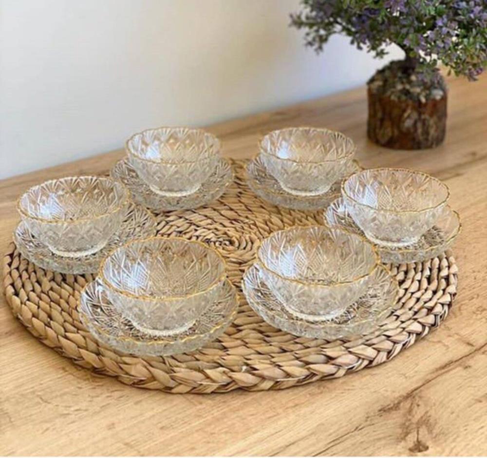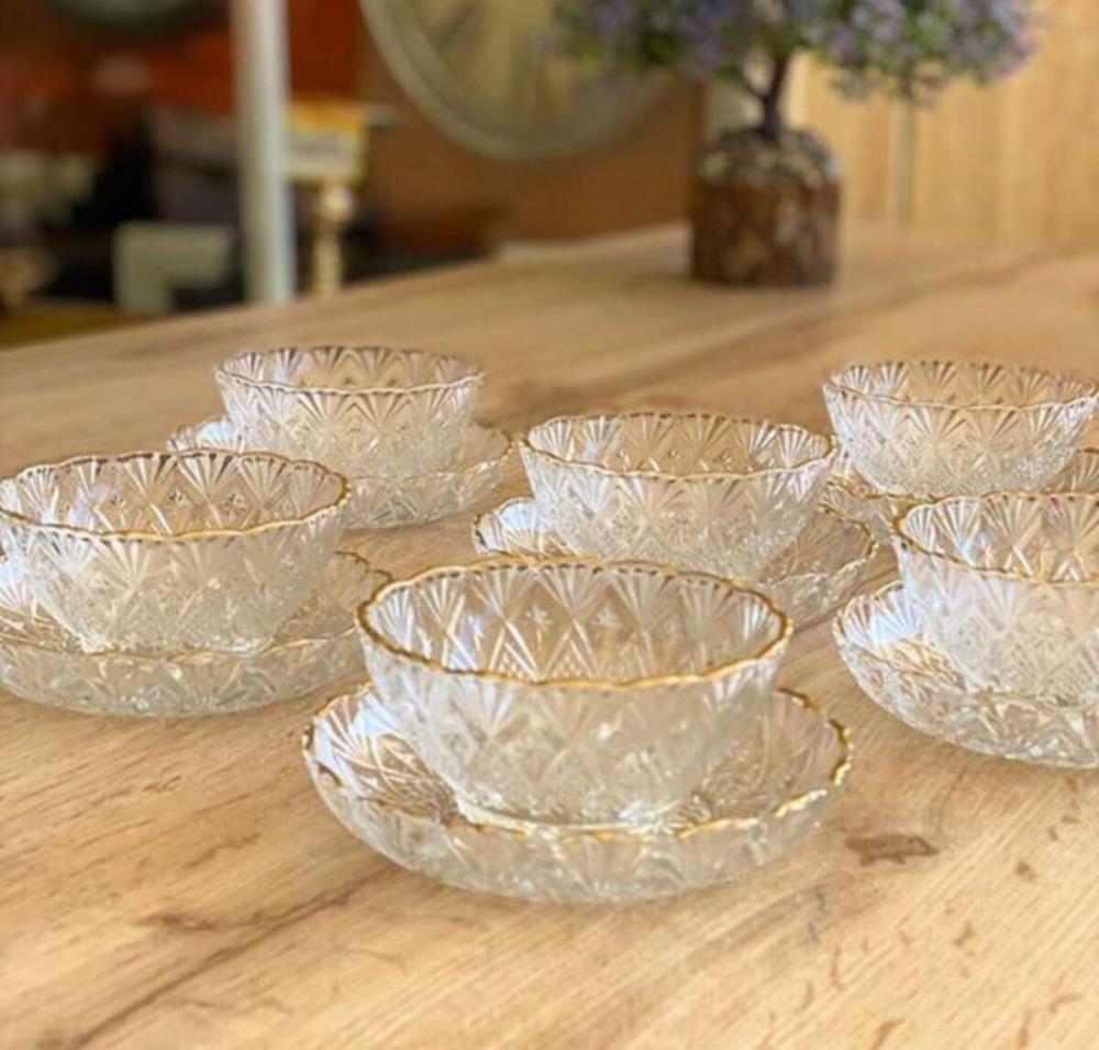 :معلومات المنتج "وعاء كريستال للوجبات الخفيفة مزين يدويا بالذهب من آساف 6 أفراد 12 قطعة"