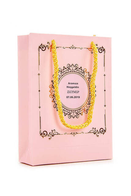 - حقيبة من الورق المقوى بمقابض وملصق شخصي