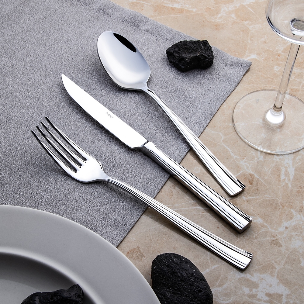 * جميع أطقم أدوات تناول الطعام Nehir مصنوعة من الفولاذ المقاوم للصدأ 18/10 Cr-Ni.