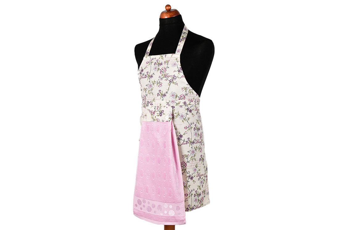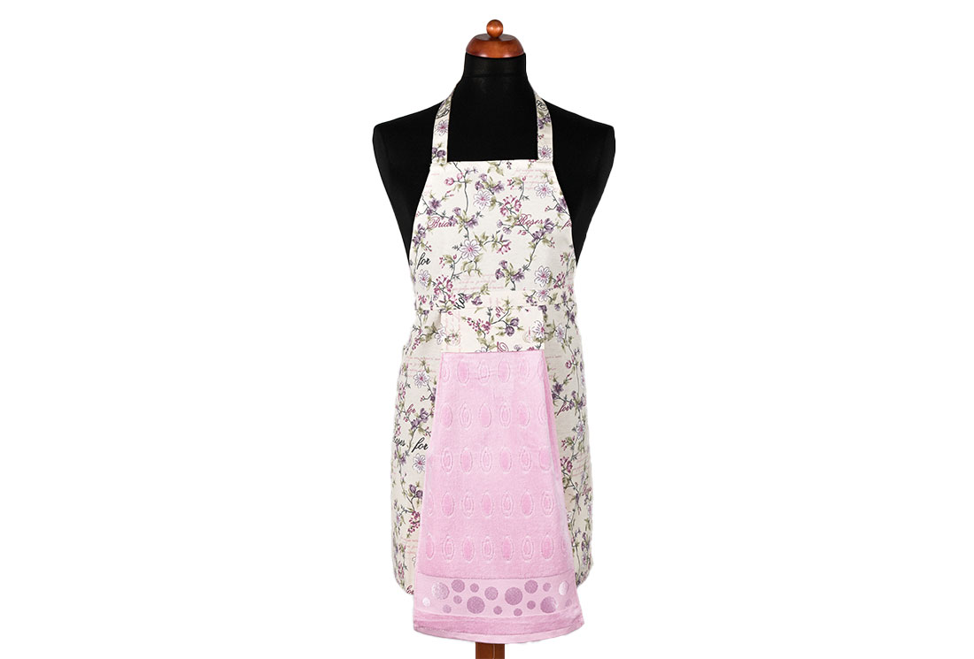 التسليم والأبعاد : 1x مريلة مطبخ بنمط زهور Dekonaz | منشفة وردية هدية ومنديل يد | 73 سم × 59 سم