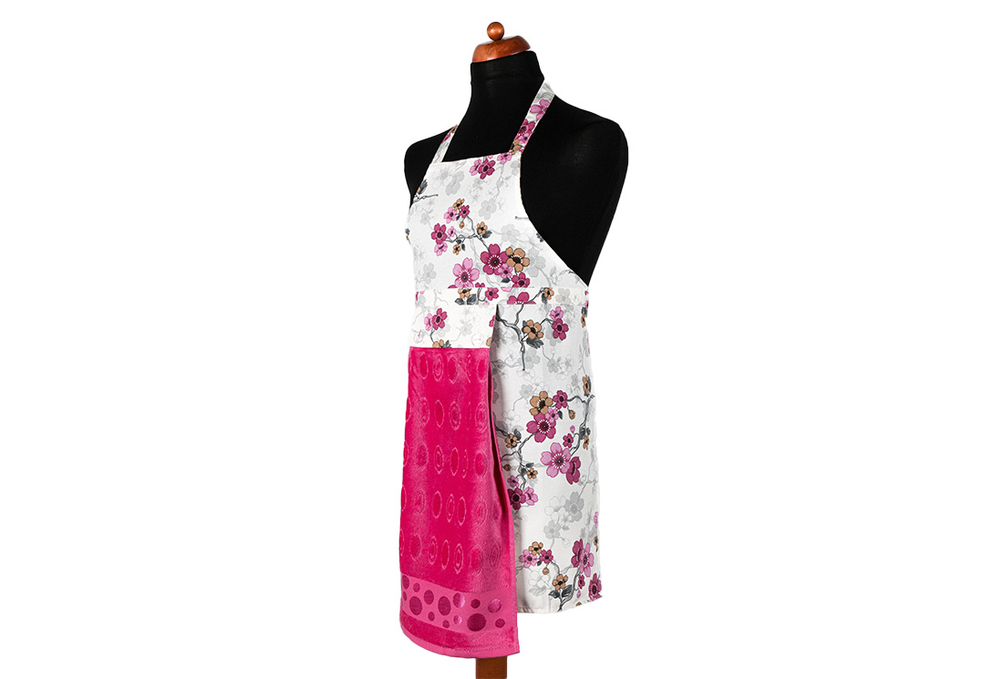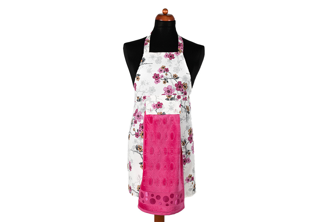 التسليم والأبعاد : 1x مريلة مطبخ بنمط زهور Dekonaz | منشفة فوشيا وقماش يد هدية | 73 سم × 59 سم
