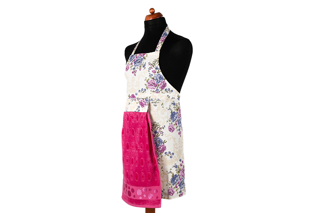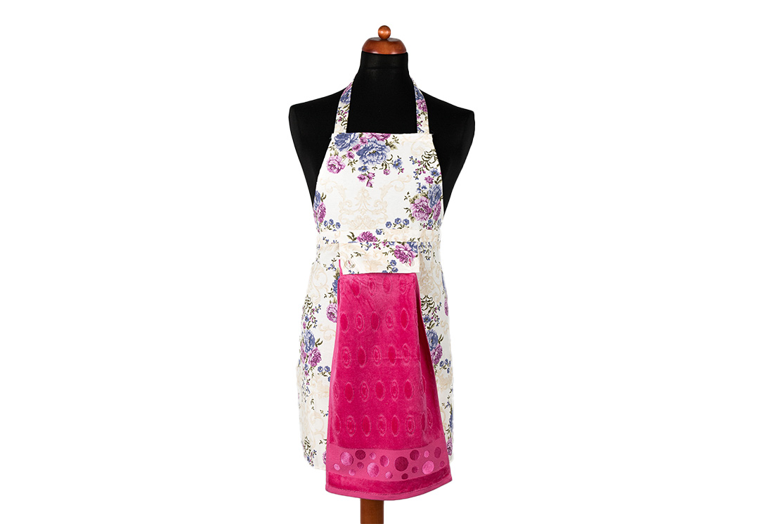 التسليم والأبعاد : 1x مريلة مطبخ بنمط زهور Dekonaz | منشفة فوشيا وقماش يد هدية | 73 سم × 59 سم