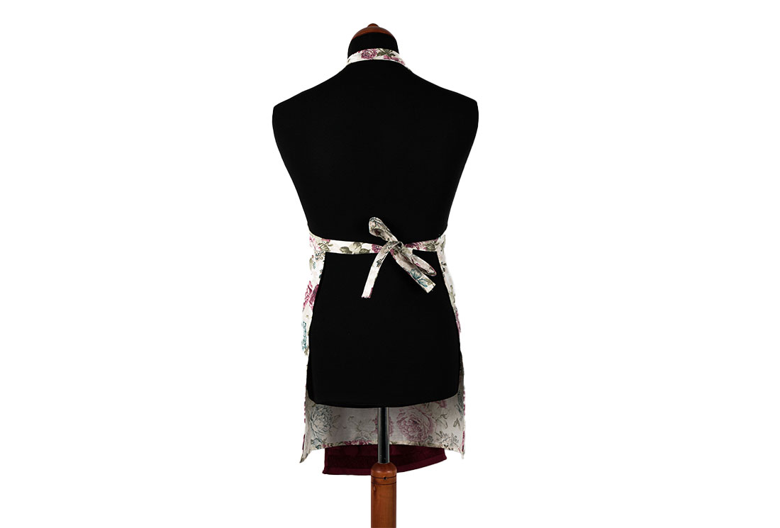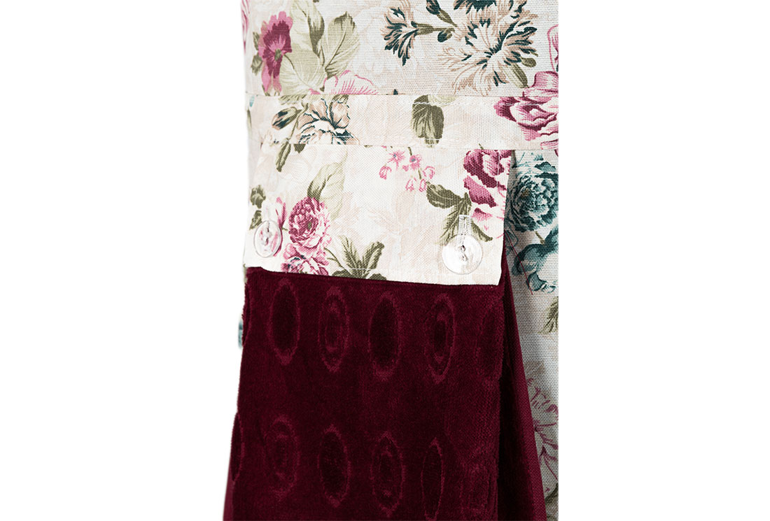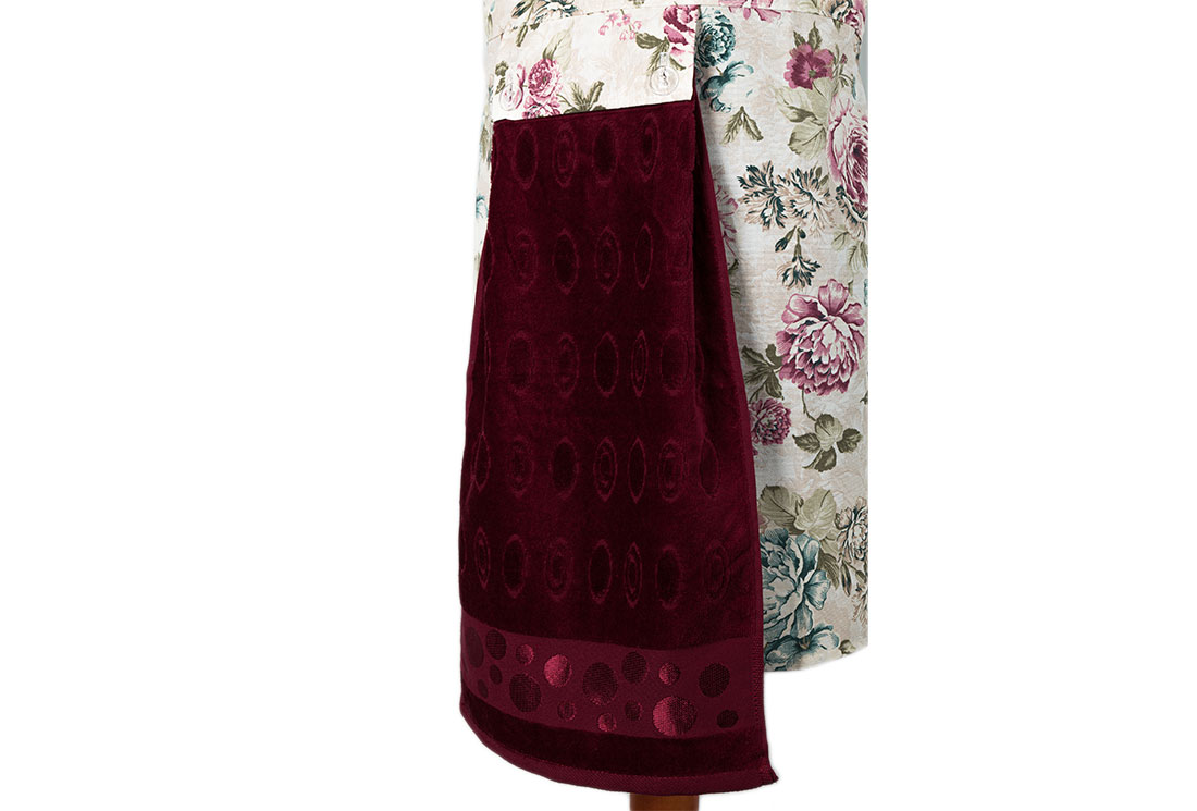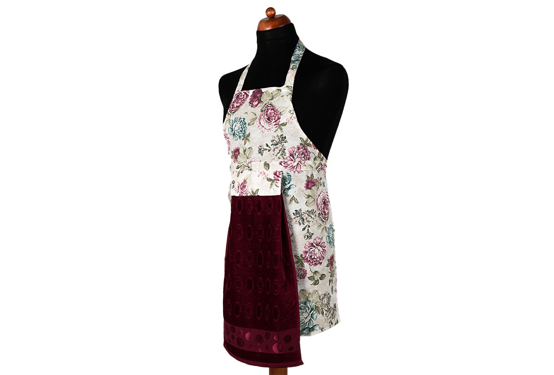 التسليم والأبعاد : 1x مريلة مطبخ بنمط زهور Dekonaz | مع منشفة حمراء كلاريت وقماش يد هدية | 73 سم × 59 سم
