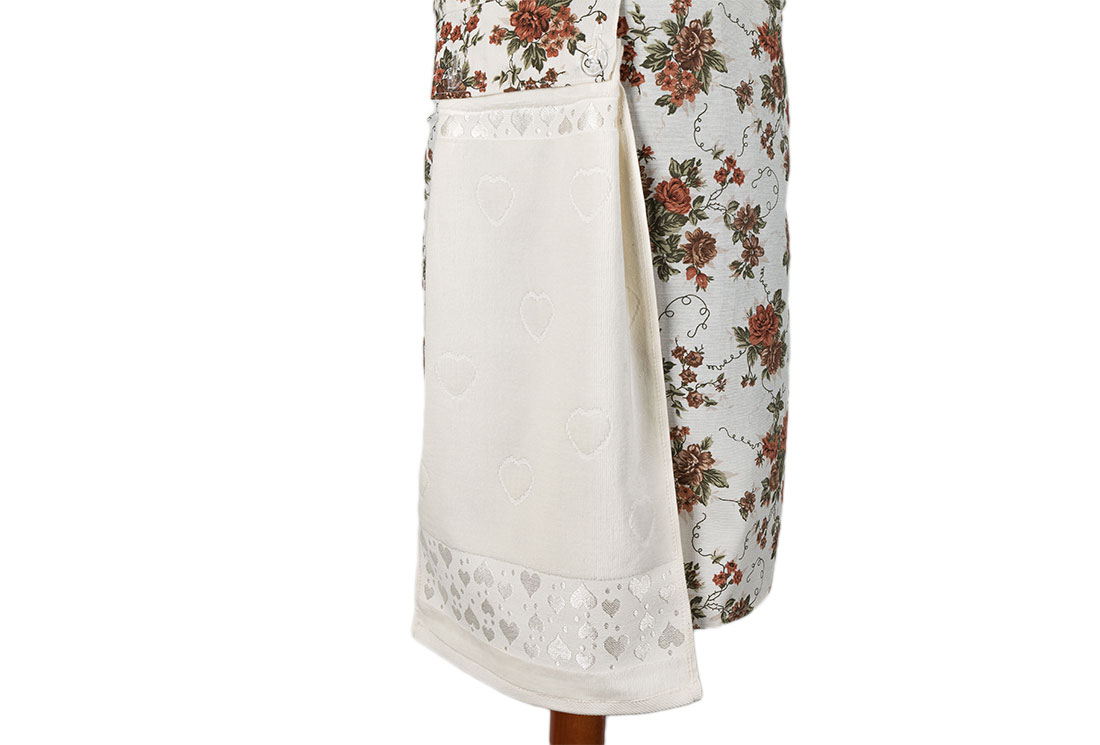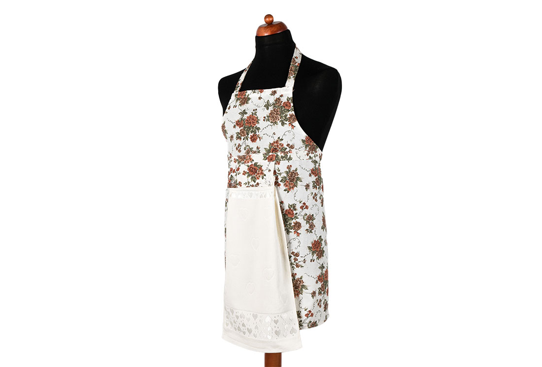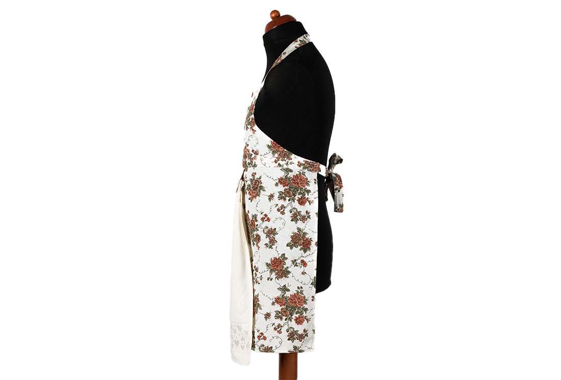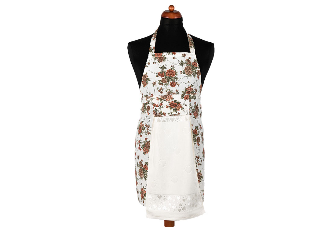 التسليم والأبعاد : 1x مريلة مطبخ بنمط زهور Dekonaz | هدية منشفة بيضاء وقماش يد | 73 سم × 59 سم