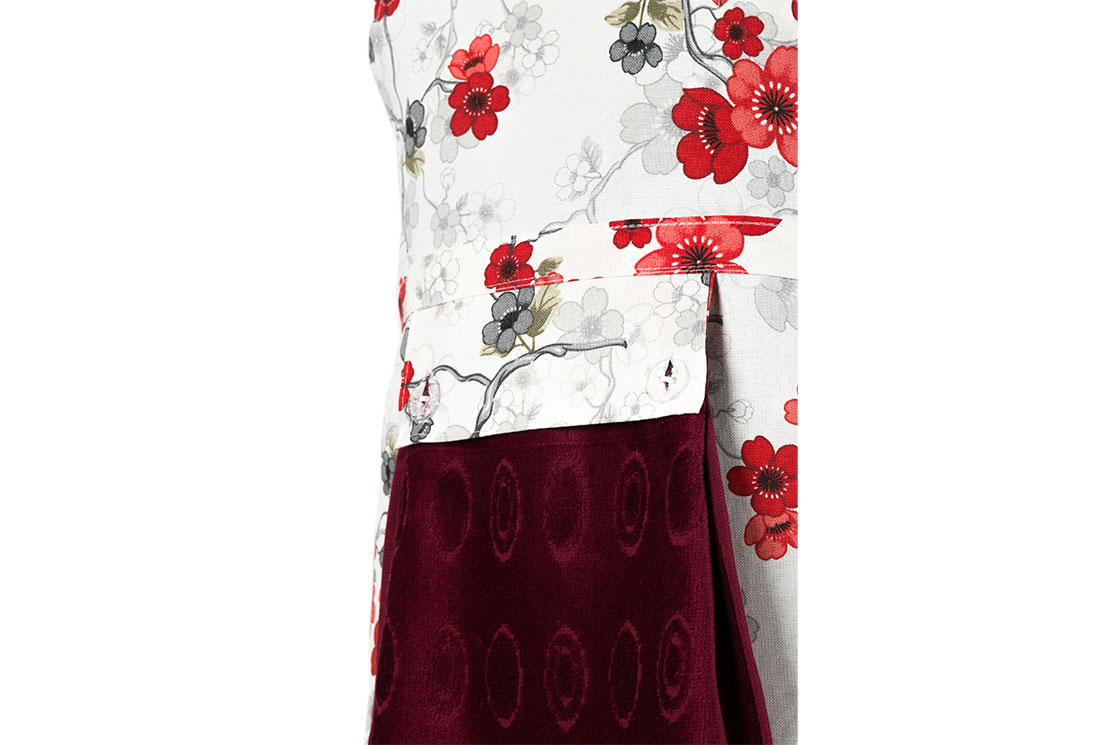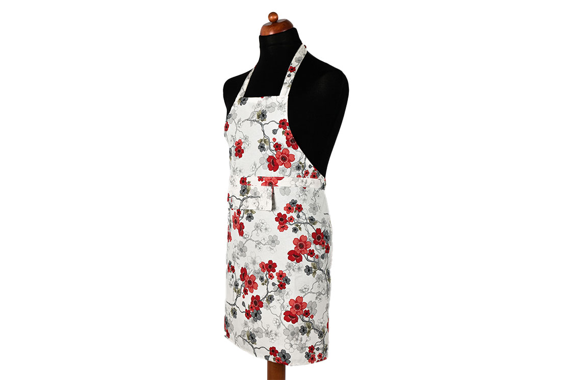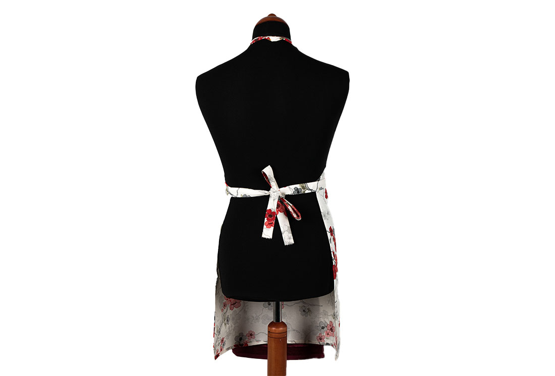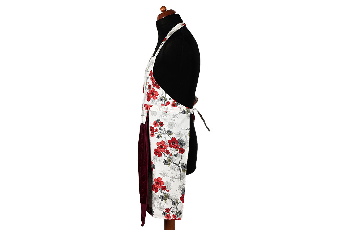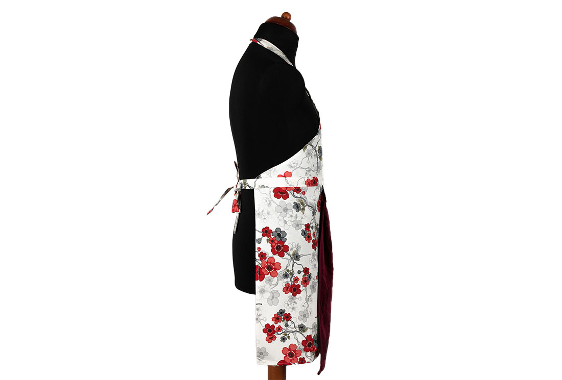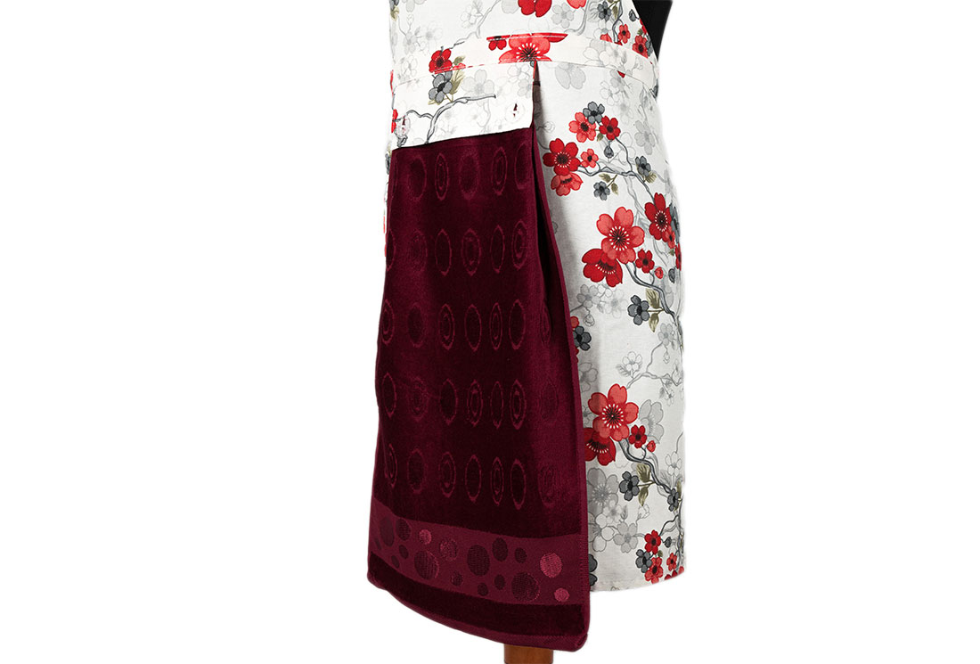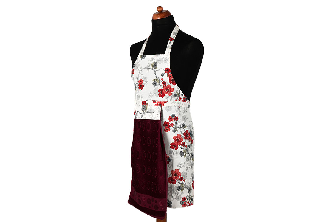 التسليم والأبعاد : 1x مريلة مطبخ بنمط زهور Dekonaz | مع منشفة حمراء كلاريت وقماش يد هدية | 73 سم × 59 سم