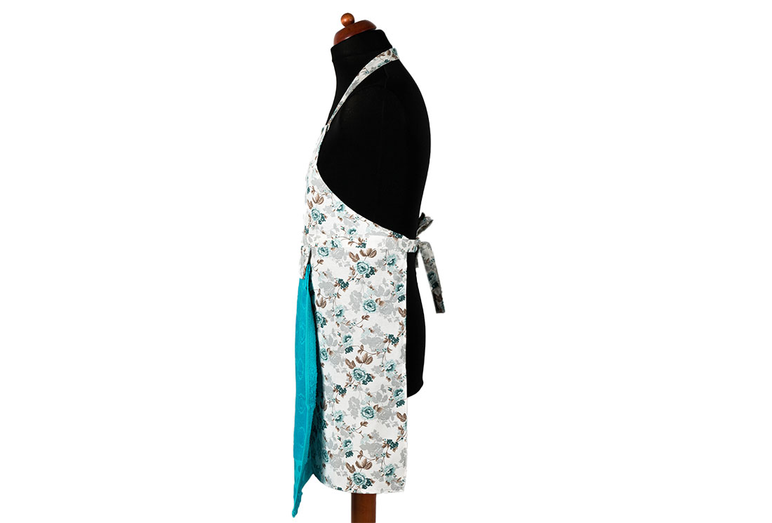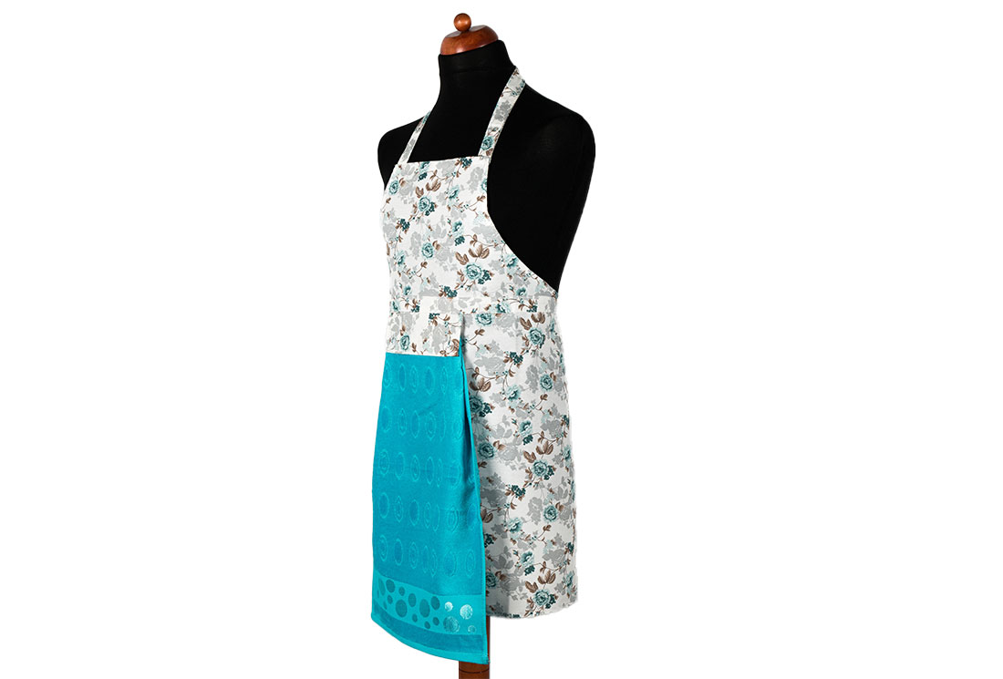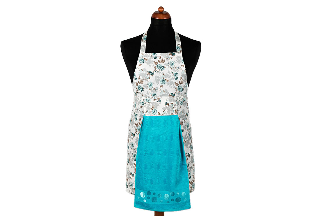 التسليم والأبعاد : 1x مريلة مطبخ بنمط زهور Dekonaz | هدية تركواز لمنشفة ومنديل يد | 73 سم × 59 سم