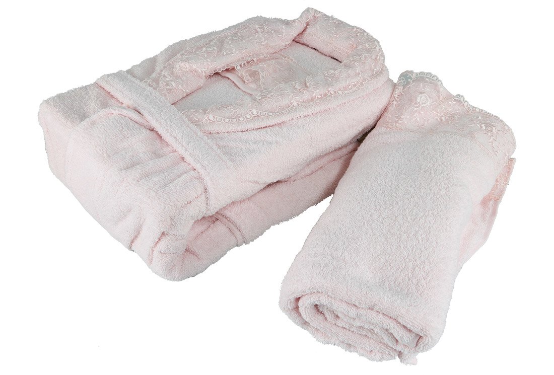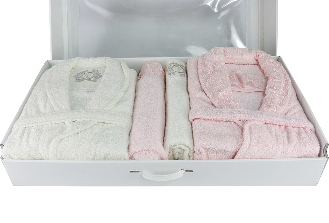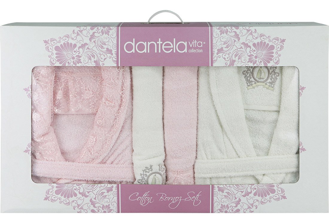 التسليم والأبعاد: 1 x مجموعة رداء الحمام العائلية من مجموعة Dantela Vita 8 قطع | كريم بينك | روشينج 0003