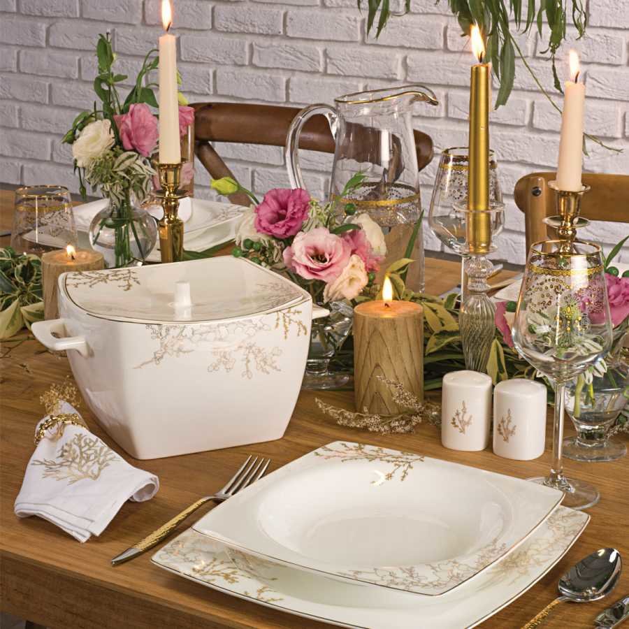 التسليم: 1X كوركماز العظام اختيار 86 قطعة مربعة عشاء الخزف مجموعة | 12 الناس | A8418