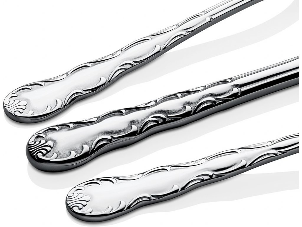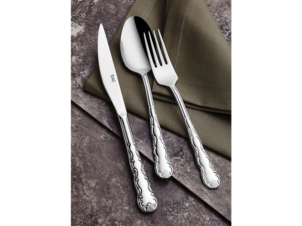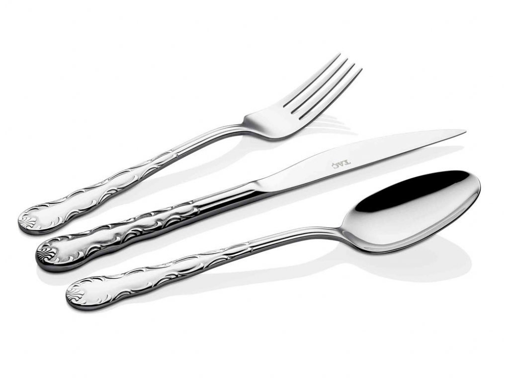 المقاسات والأبعاد: 1 x طقم أدوات مائدة Tac Mezon Jasmine Platinum 90 قطعة | 12 شخصا | ستانلس ستيل | تاك -1503