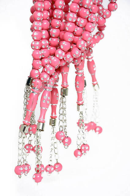 سبحة وردية 99 قطعة بنمط تثقيب (حزمة) أعدت على شكل سطح مكون من 10 قطع لونه وردي مع...