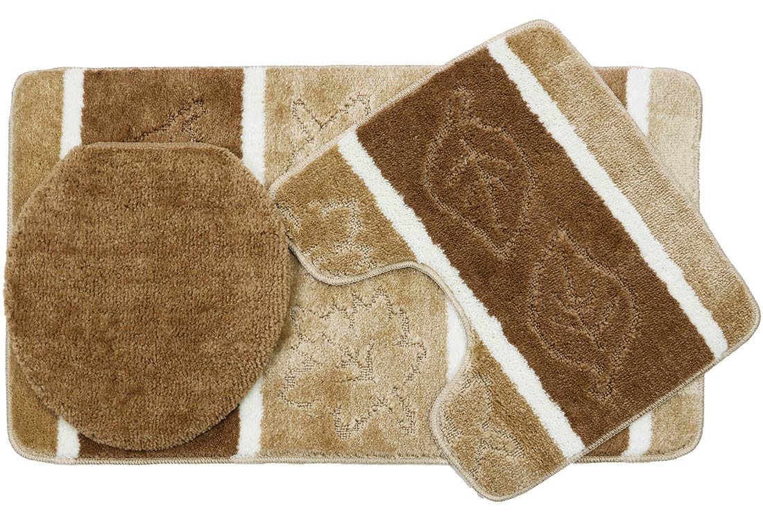 التسليم: طقم بساط حمام 3 قطع دويغو ليف نمط 1x | براون | بان 0027