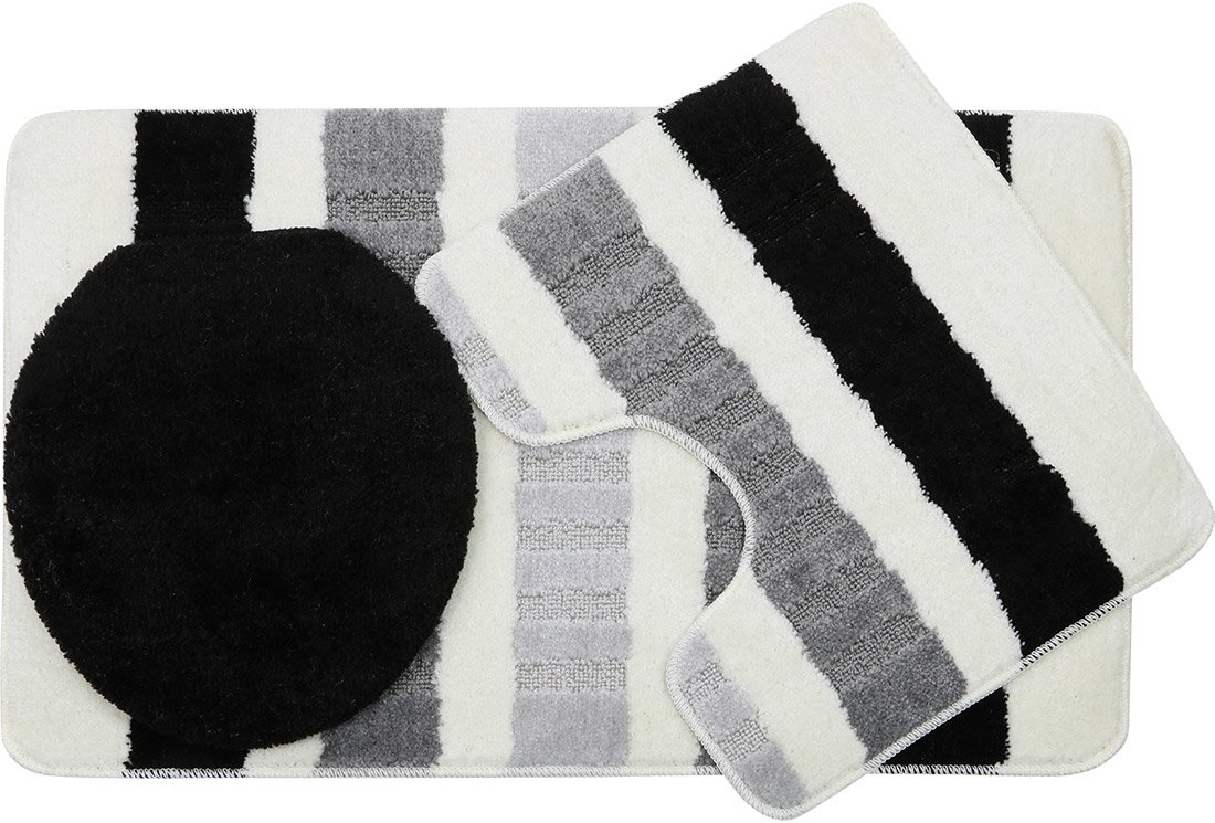 التسليم: 1x Duygu Line طقم بساط حمام مزخرف من 3 قطع | أسود | حظر 0020