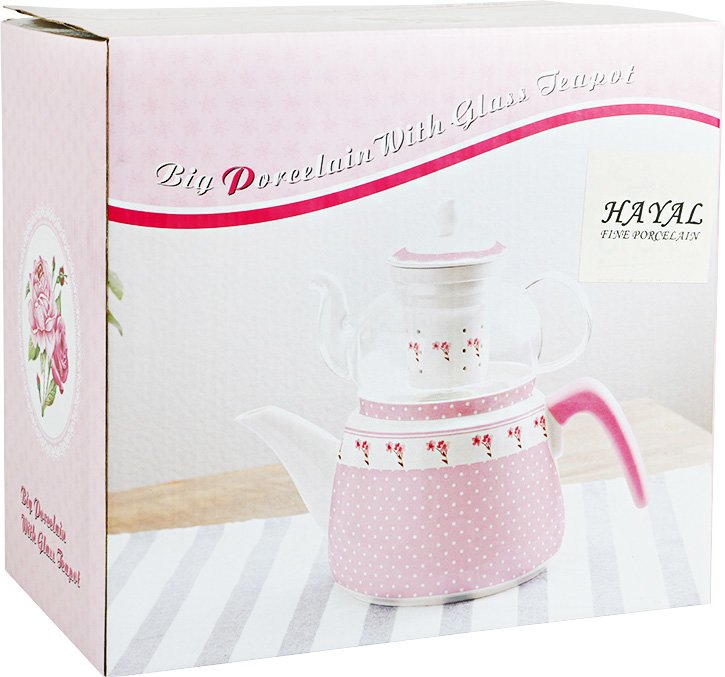 التسليم والأبعاد: 1 × مجموعة إبريق الشاي | زجاج بورسلين | كريم بينك | 2.6 لتر | AS000619-14368