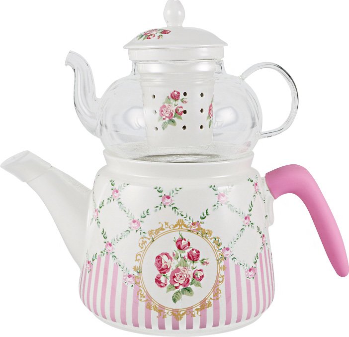 - إبريق الشاي العلوي من الزجاج ، والجانب السفلي مصنوع من مادة البورسلين