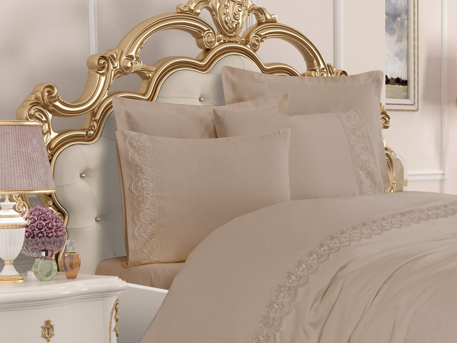 مصنوع من نسيج قطن 100٪. تم إنشاء تصميم خاص عن طريق خياطة Guipure الفرنسية على غطاء اللحاف.