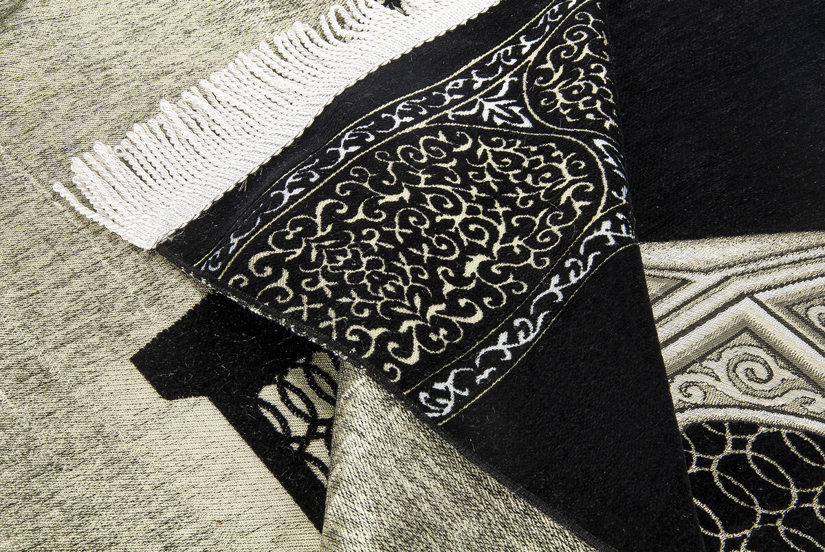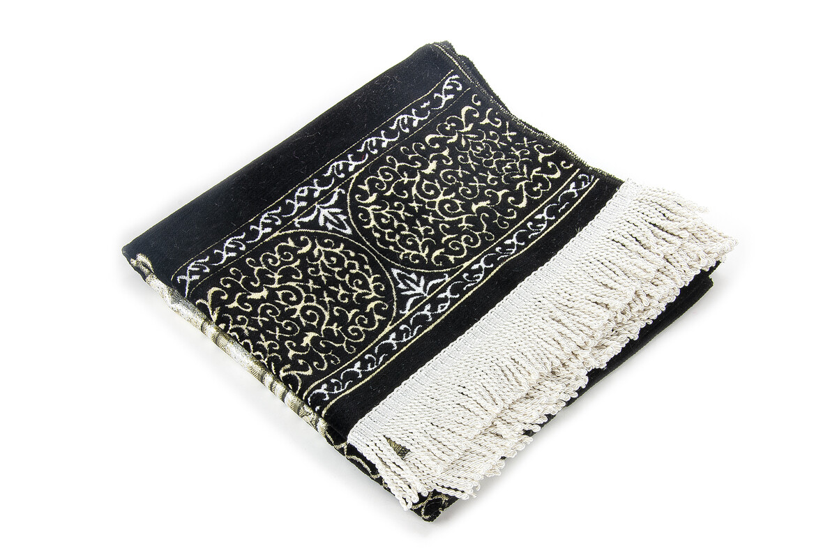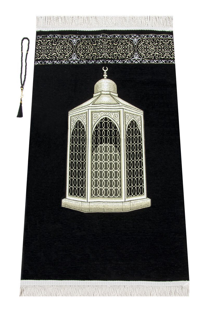 :معلومات المنتج "سجادة صلاة الشنيل الفاخرة من Makamı إبراهيم منقوشة - أسود"