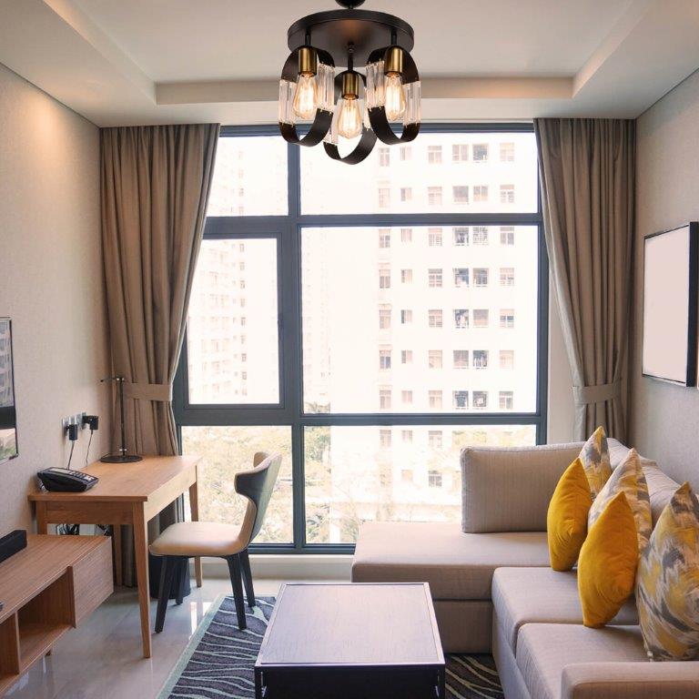 . تم تصميم "الثريا الثلاثية" من خلال مزج الطراز الحديث مع نظارات المنشور البصري الشفافة ، مما يضيف أجواءً مختلفة إلى البيئة التي توجد بها.