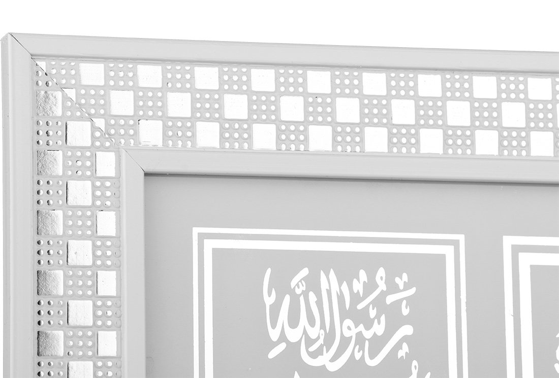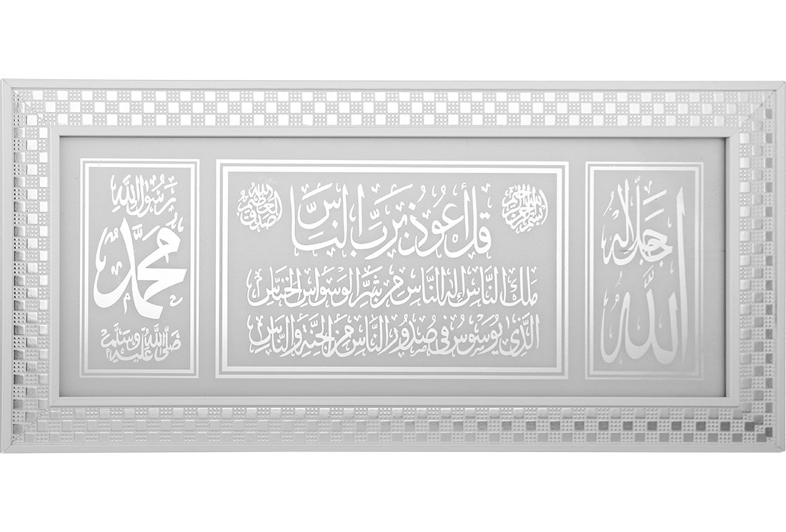 الأبعاد والتسليم: 1x طاولة دينية إسلامية "الله ومحمد وناس سورة" مقاس 27x57 سم | أبيض