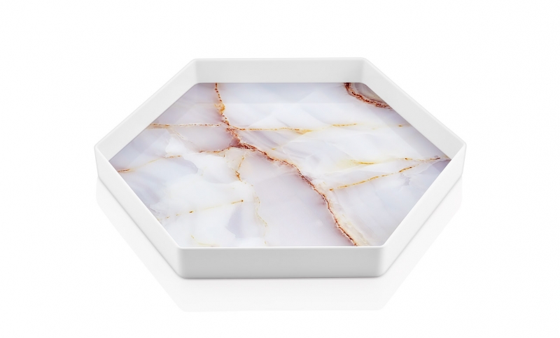التسليم: 1 x Vip Ahmet Hexagonal White Glass Tray | VIPAHMET-VP-199