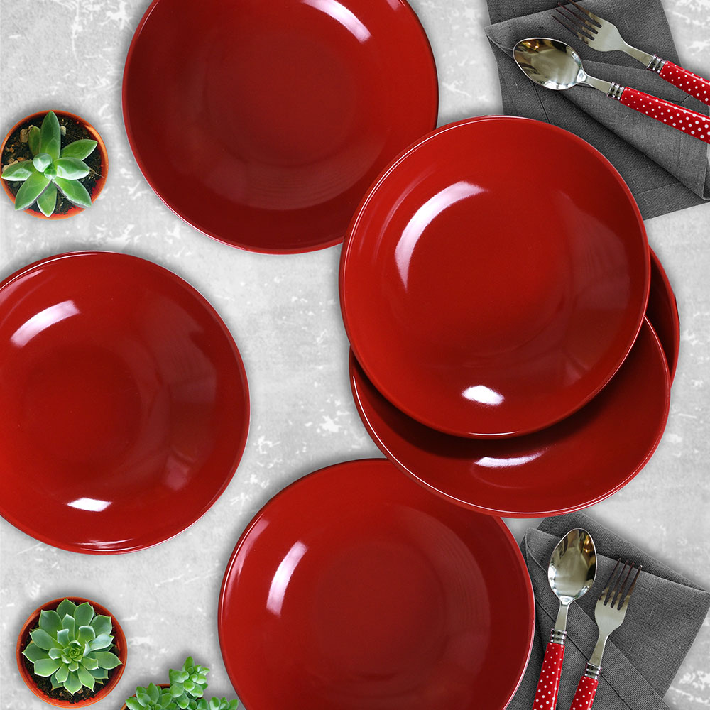 6 أطباق عشاء باللون الأحمر من keramika بعلم ألفا ، والتي ستفاجئ ضيوفك وتخلق لك وليمة بصرية ، ستكون لا غنى عنها لطاولتك. مع تصميمه الأنيق والبسيط ، سوف يرافق عروضك التقديمية على طاولاتك بنكهة.