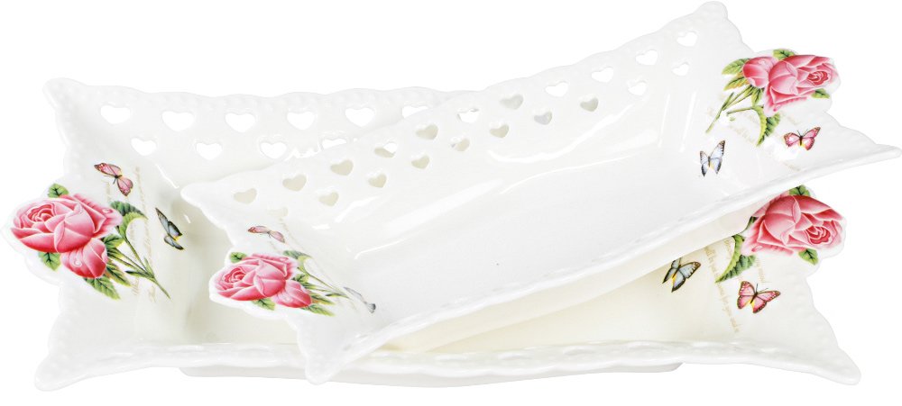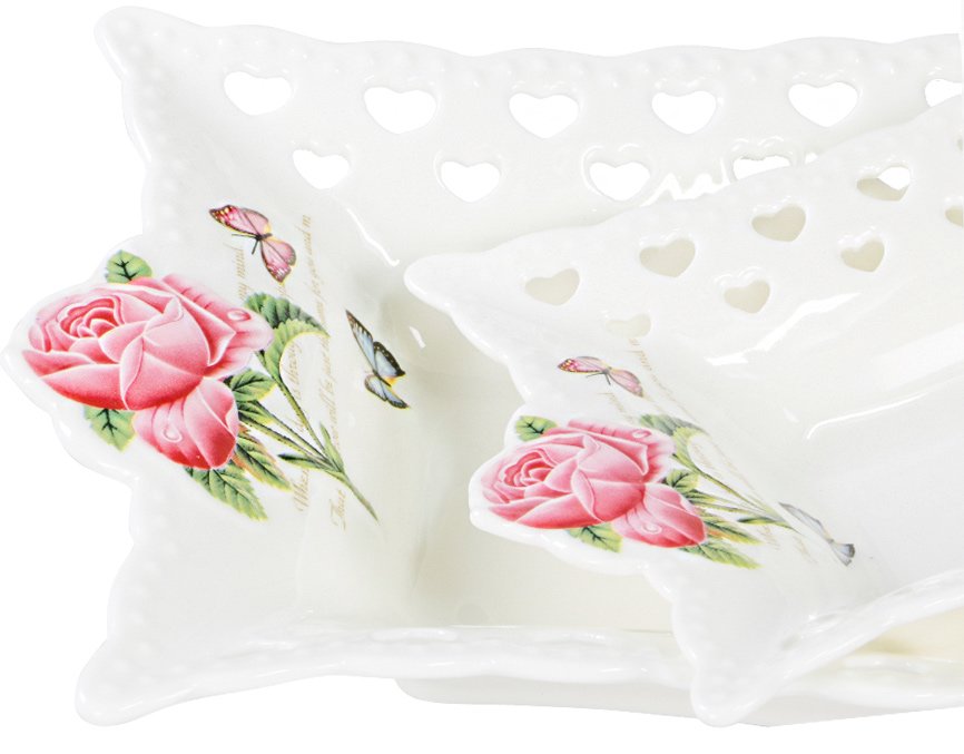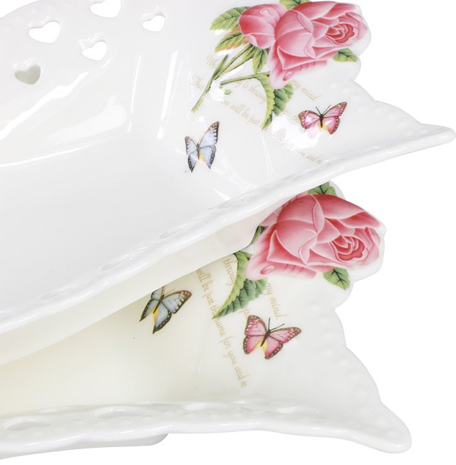 المقاسات والتسليم: 1 x سلطانية خزفية للديكور من قطعتين ألمينا | نمط القلب والورد | AL-1082
