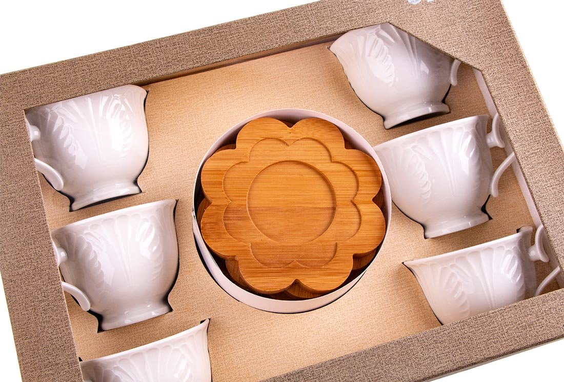 التسليم والأبعاد: 1 × المينا 6 قطعة مجموعة كبيرة من القهوة والخزف والخزف 175 | أبيض