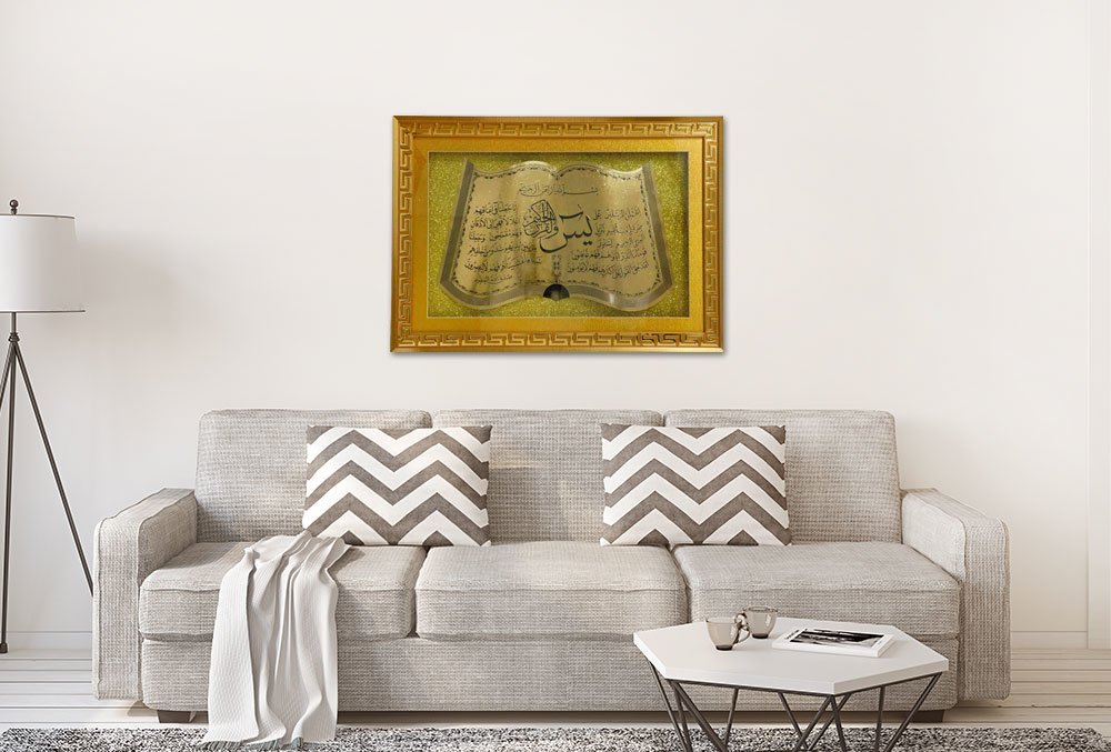 Teslimat: 1x Almina Lüks Tablo Kuran 3D Yasin Suresi Altın Tozlu ve Çerçeveli