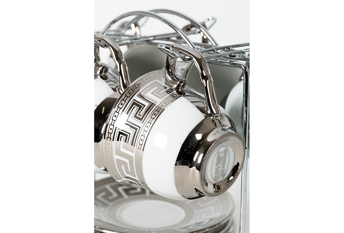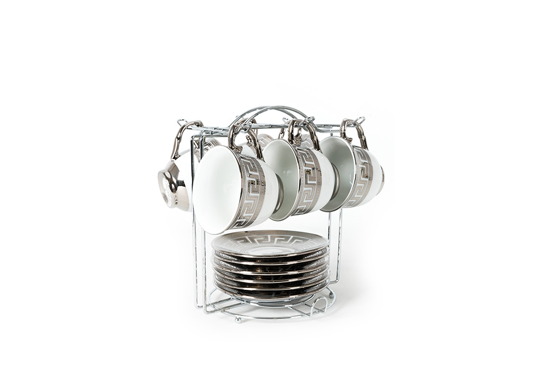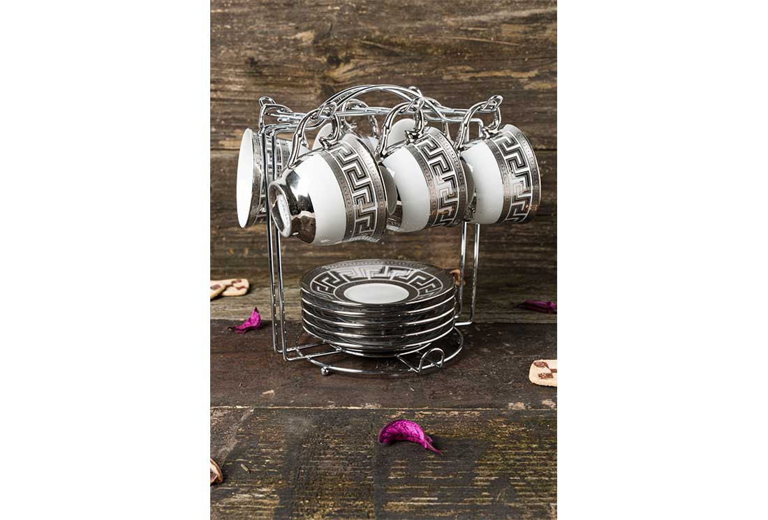 التسليم: 1X مجموعة بافاري 6 فناجين قهوة تركية حامل معدني | الفضة | HT694- س