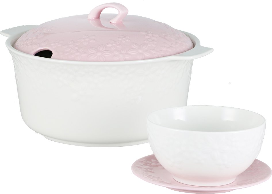 Teslimat: 1x Bavary Fas 15 Parça Porselen Çorba Seti | Beyaz Pembe | 6 Kişilik | B5