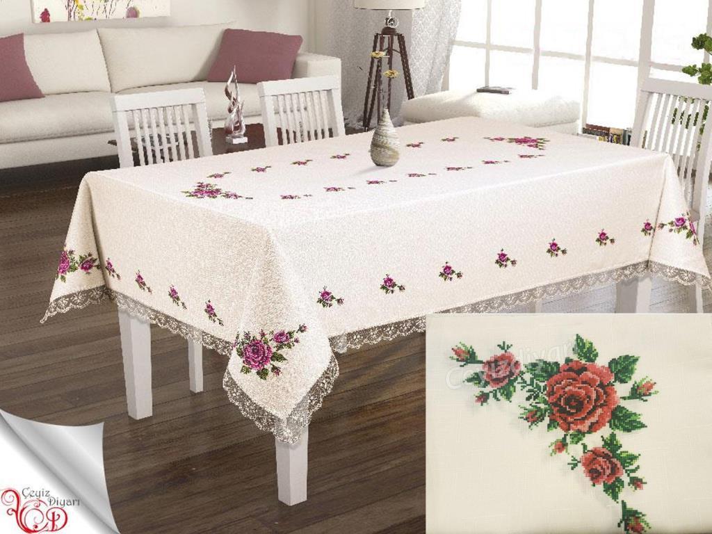 طقم مفرش مائدة مطبوع بغرز متقاطعة 26 قطعة أحمر كلاريت