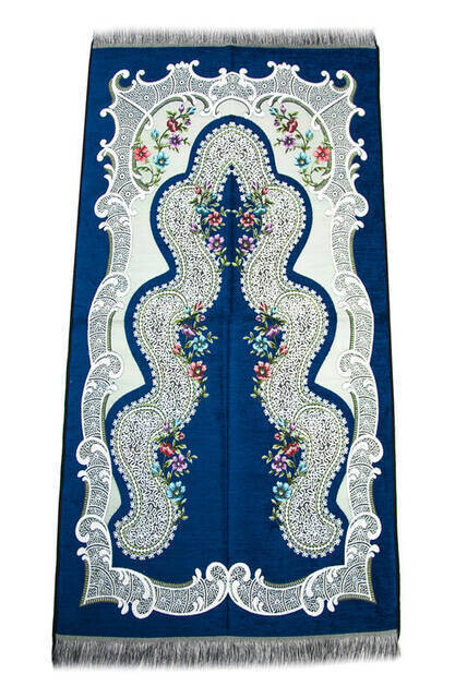 سجادة صلاة الشنيل الوردية - كحلي