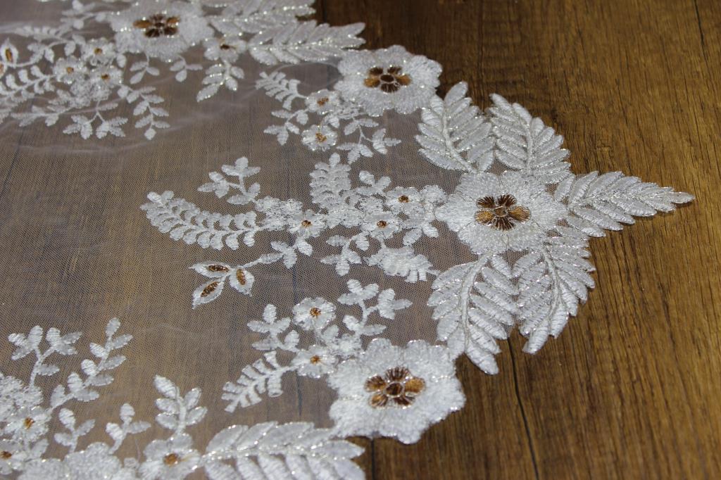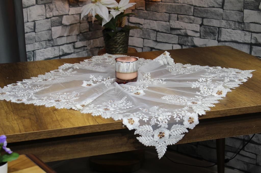 تم إنشاء تصميم خاص من خلال تطريز أنماط الأزهار على حواف طاولة الموقد.
