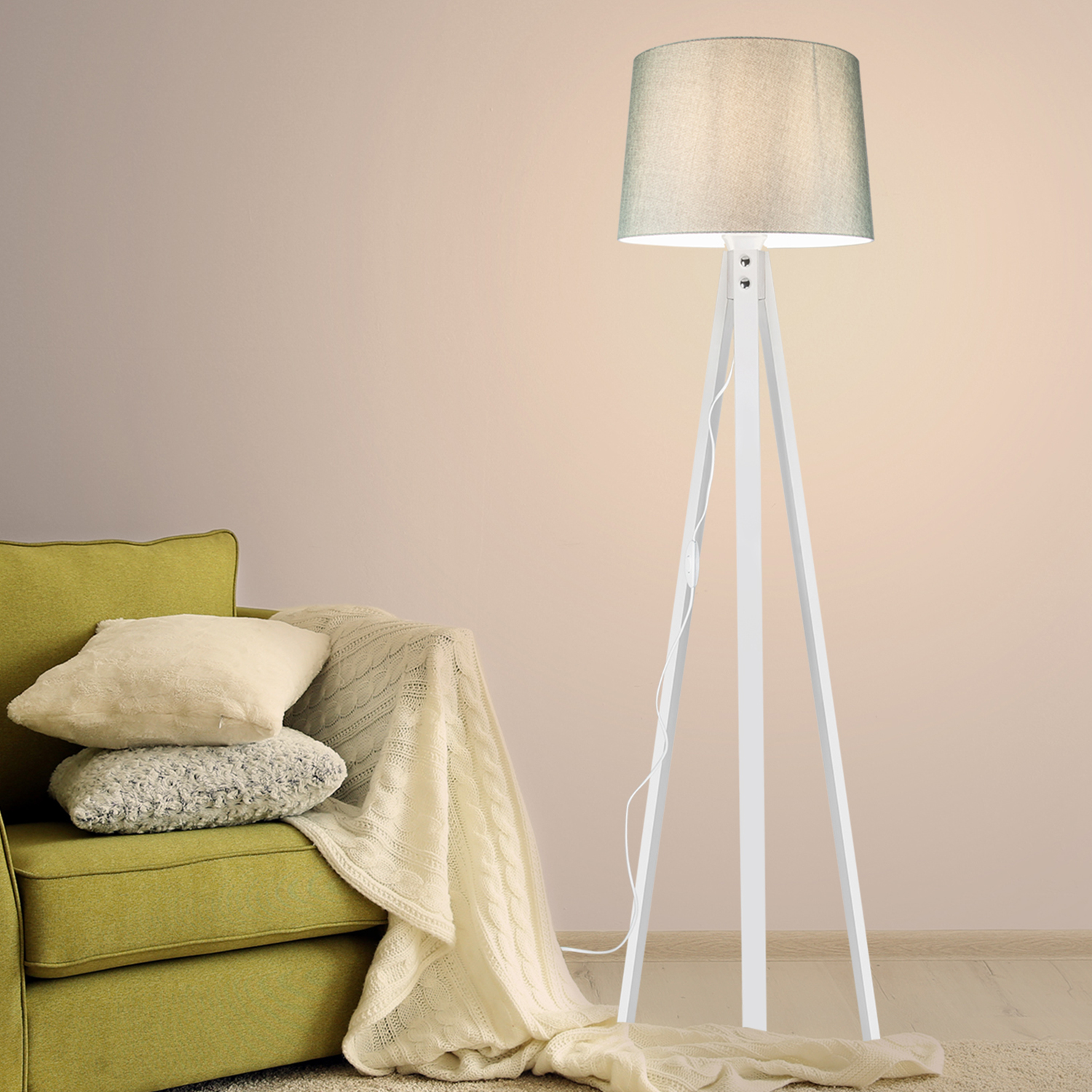 :معلومات المنتج "ديكو مصباح أرضي أبيض قدم قبعة خضراء"