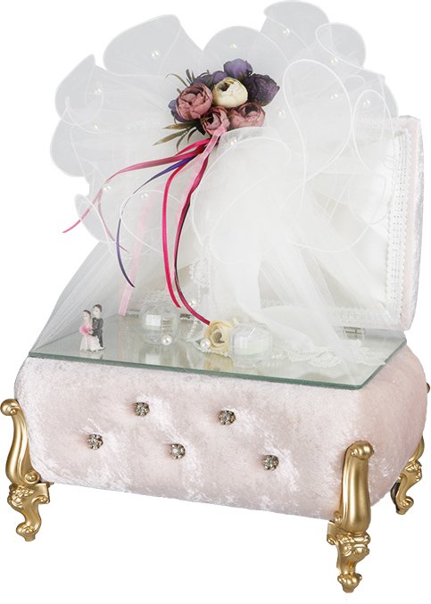 التسليم والأبعاد: 1 × صندوق فاخر مصنوع يدويًا من ديكوناز + صينية دائرية مزخرفة بمرآة | زفاف سوز نيشان | مسحوق | KB-0003