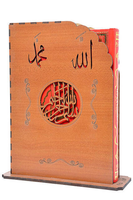 Kuranı Kerimlerimizi muhafaza etmek için üretilmiş olan bu ürün 3 mm ahşaptan üretilmiştir. Üzerinde Allah ve Muhammet Lafızı bulunmaktadır. Kiremit renklidir ölçüsü 26x18,5 cm ebatındadır Orta boy Kuran-ı Kerim'lere göre üretilmiştir. Kuranı Kerim dahil değildir sadece kutu yollanılmaktadır özel sipariş olarak Kuranı Kerimde dahil edilmektedir.