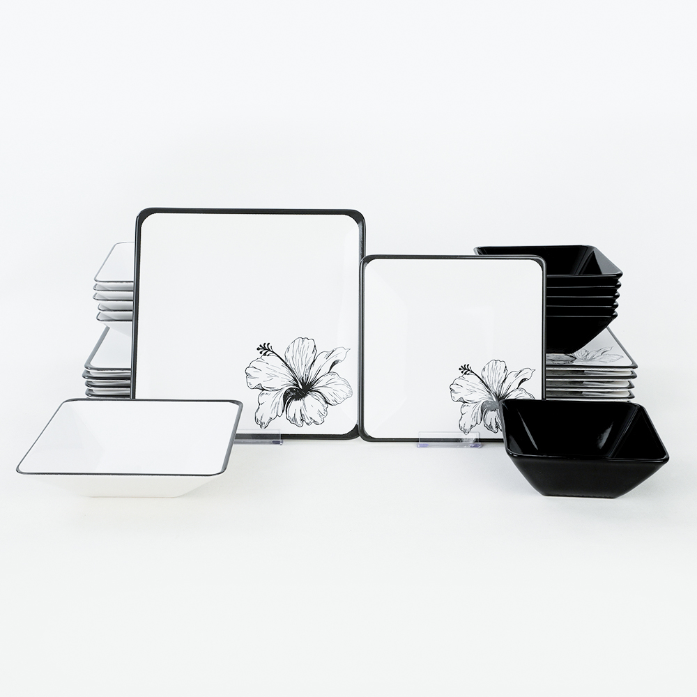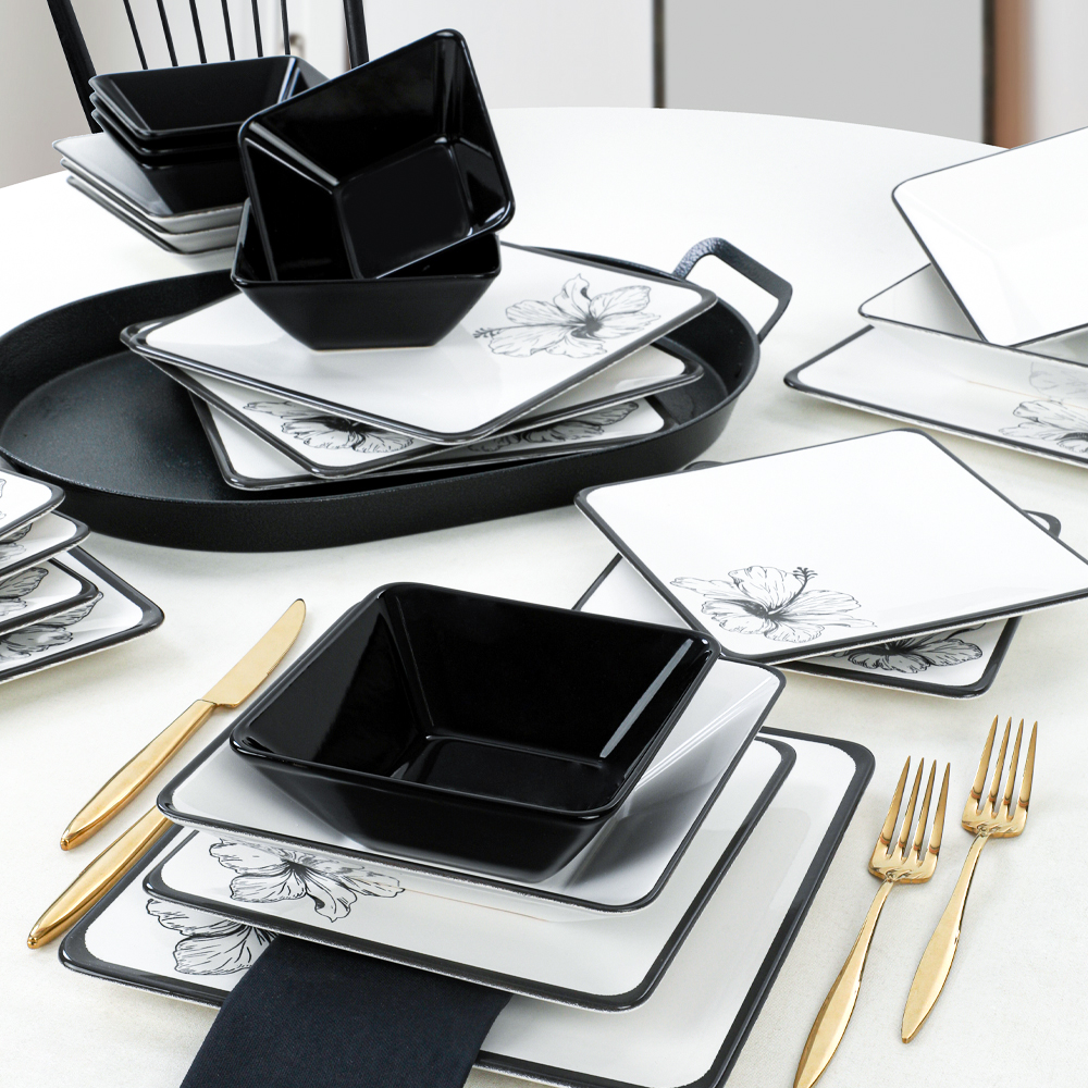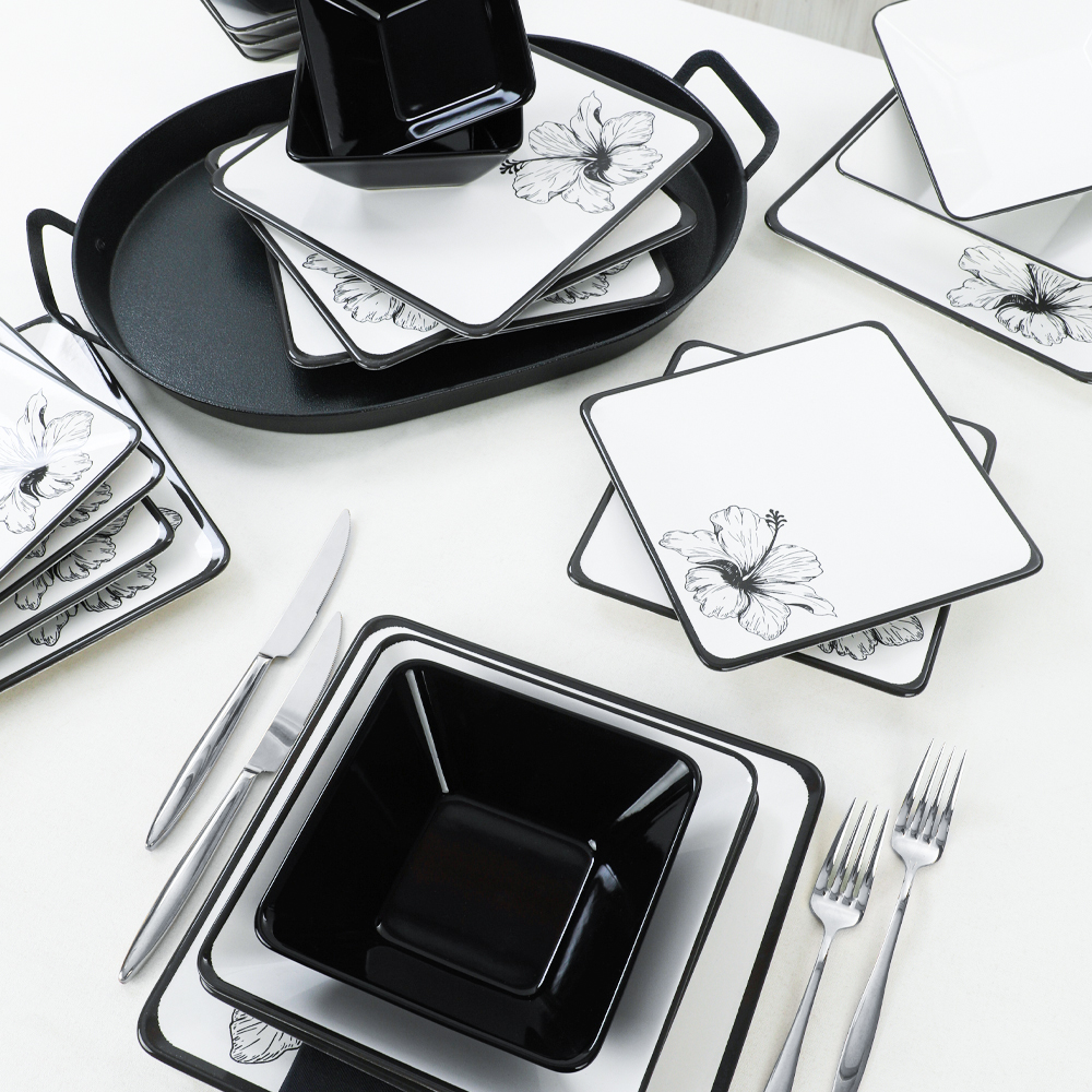Özel kare yapısıyla sunumlarınızı alışılagelmişin dışına çıkarın! Keramika 6 Kişilik Lotus Siera Kare yemek takımı, usta ellerle şekillenerek özenle üretilmiştir. Ürünü hoş bir akşam yemeğinde veya güzel bir güne başlarken kahvaltılarınızda rahatlıkla kullanabilirsiniz. Siyah ve beyaz rengin asaletini sade ve şık çiçek dekoru ile birleştiren bu takımı göz alıcı şıklığı ile sevdiklerinize çok özel bir hediye olarak da tercih edebilirsiniz.