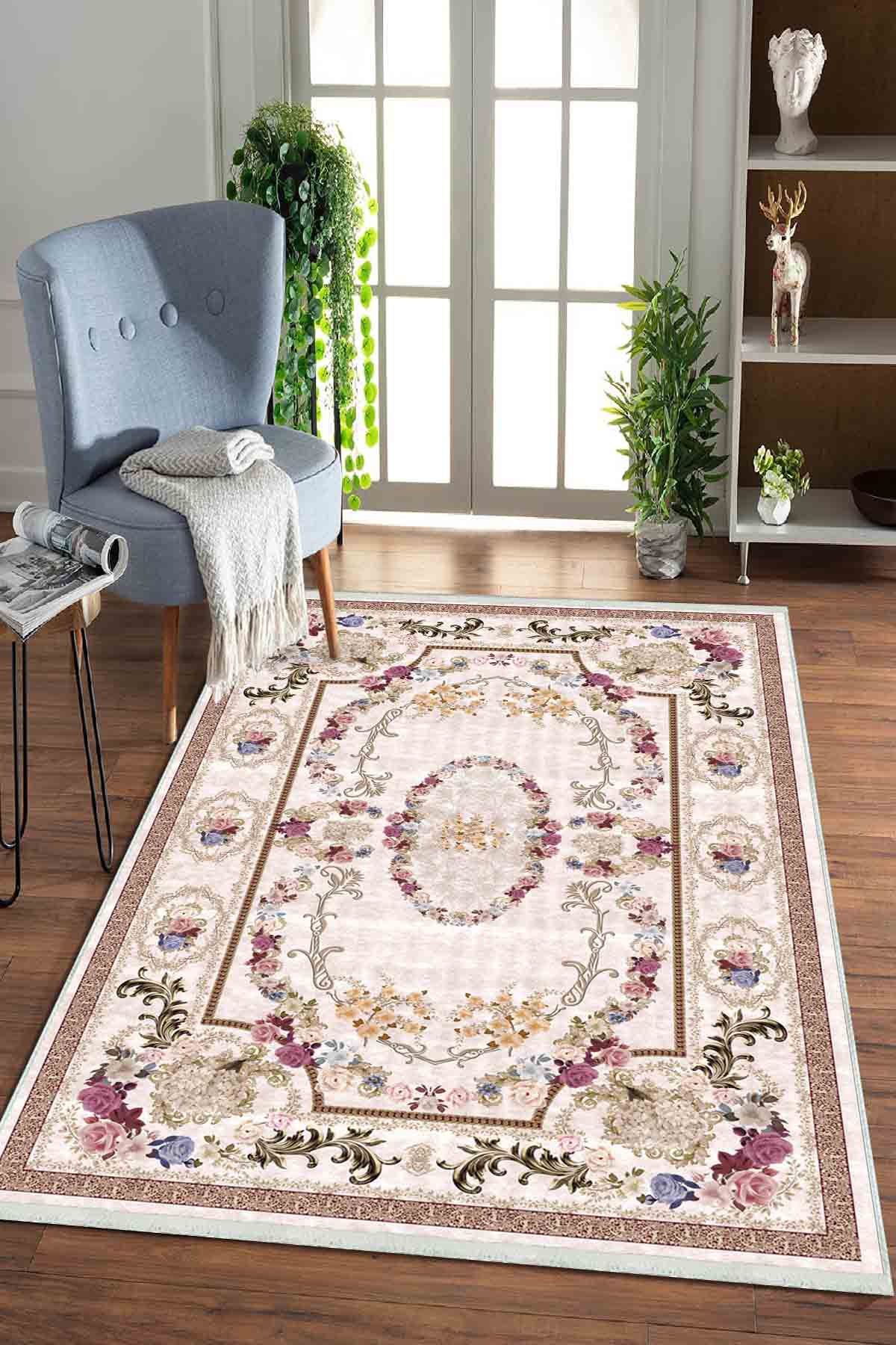 بريكليم سجادة زخرفية قابلة للغسل بقاعدة حريرية مانعة للانزلاق | MLN-IP-HK-099