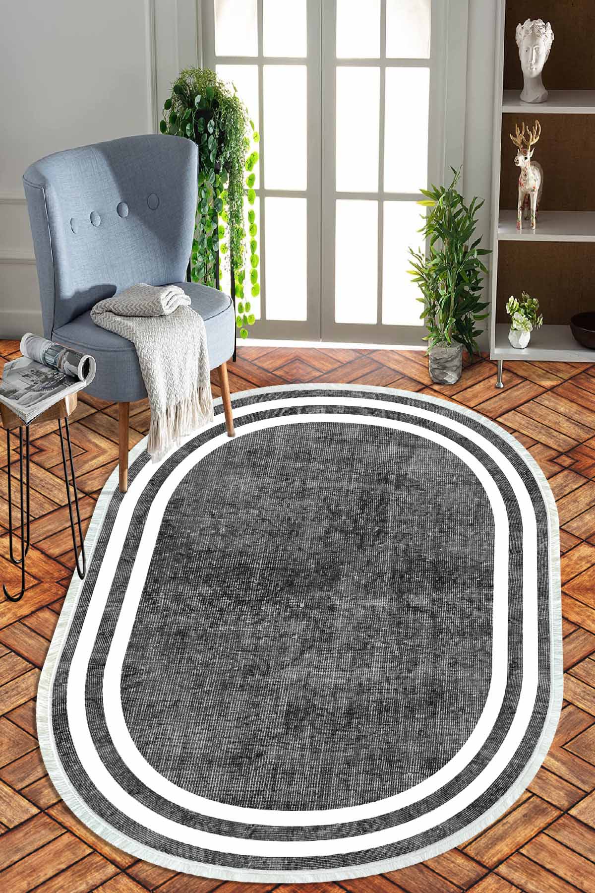الأبعاد والتسليم: 1x سجادة زخرفية من بيركيليم بيضاوية الشكل قابلة للغسل وحريرية وغير قابلة للانزلاق | MLN-IP-O-HT-575